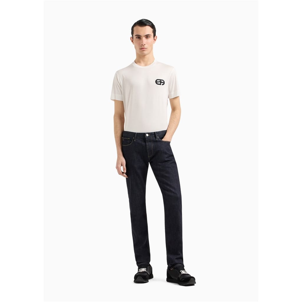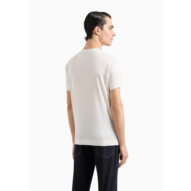 This Emporio Armani top is a casual essential, featuring a regular fit and short sleeves. The solid design is complemented by a crew neck and a subtle logo embellishment, making it a versatile addition to any wardrobe. -