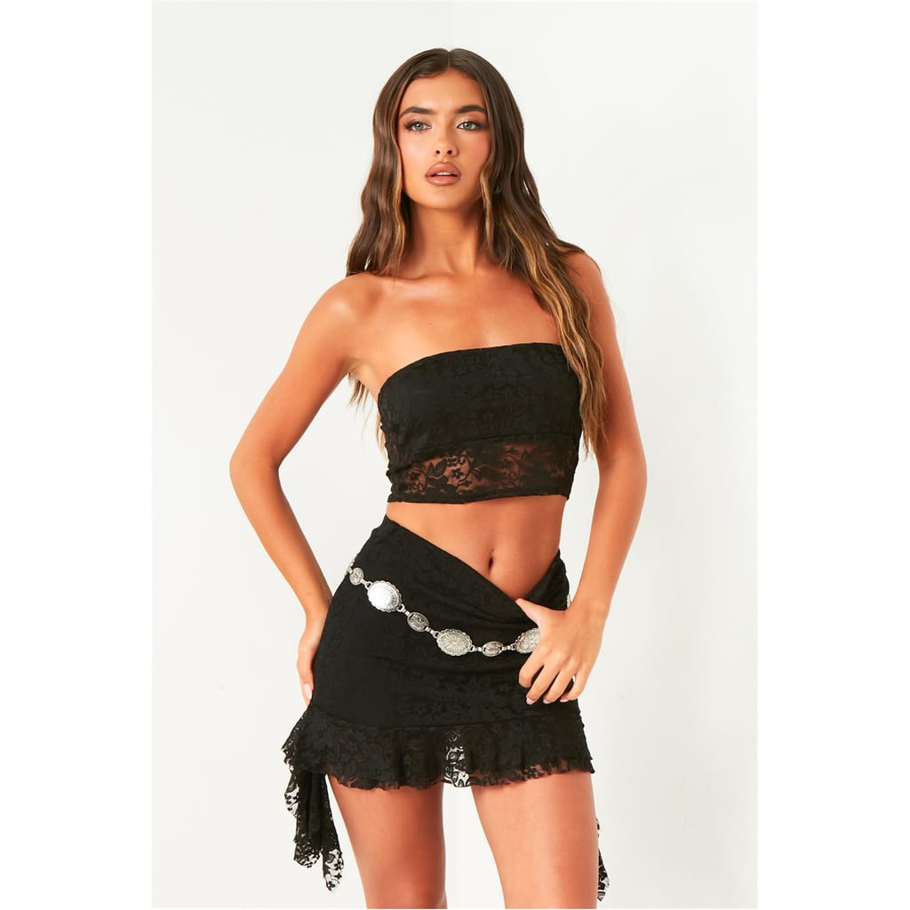 Elevate your summer style with our Lace Bandeau Crop Top, designed for the fashion-forward. Crafted with delicate lace, this top exudes timeless elegance and feminine charm. Its bandeau silhouette offers a flattering fit, perfect for pairing with high-waisted bottoms. Embrace sophistication and make a statement with this essential piece for any warm-weather wardrobe -