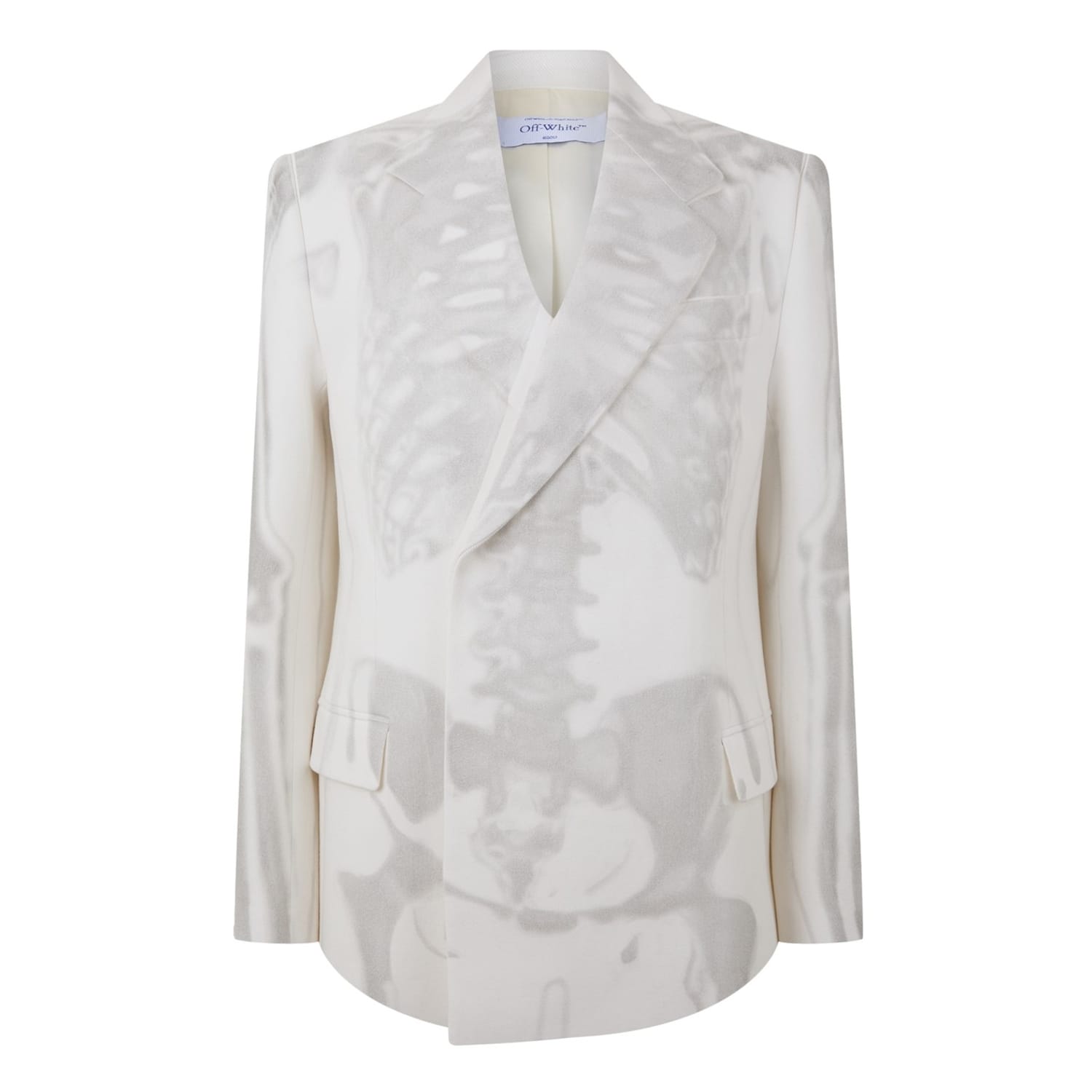This Off-White denim jacket from the casual collection features a lapel collar and a button closure. It has a regular fit with a straight hem and is adorned with a large genie graphic print. The jacket includes practical pockets, making it a stylish and functional addition to your wardrobe. -