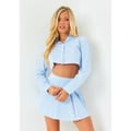 Embrace effortless style with our Gabrielle Blue Stripe Cotton Cropped Shirt, the perfect addition to your wardrobe for any season. Crafted from soft, breathable cotton, this shirt promises all-day comfort while making a chic statement. -