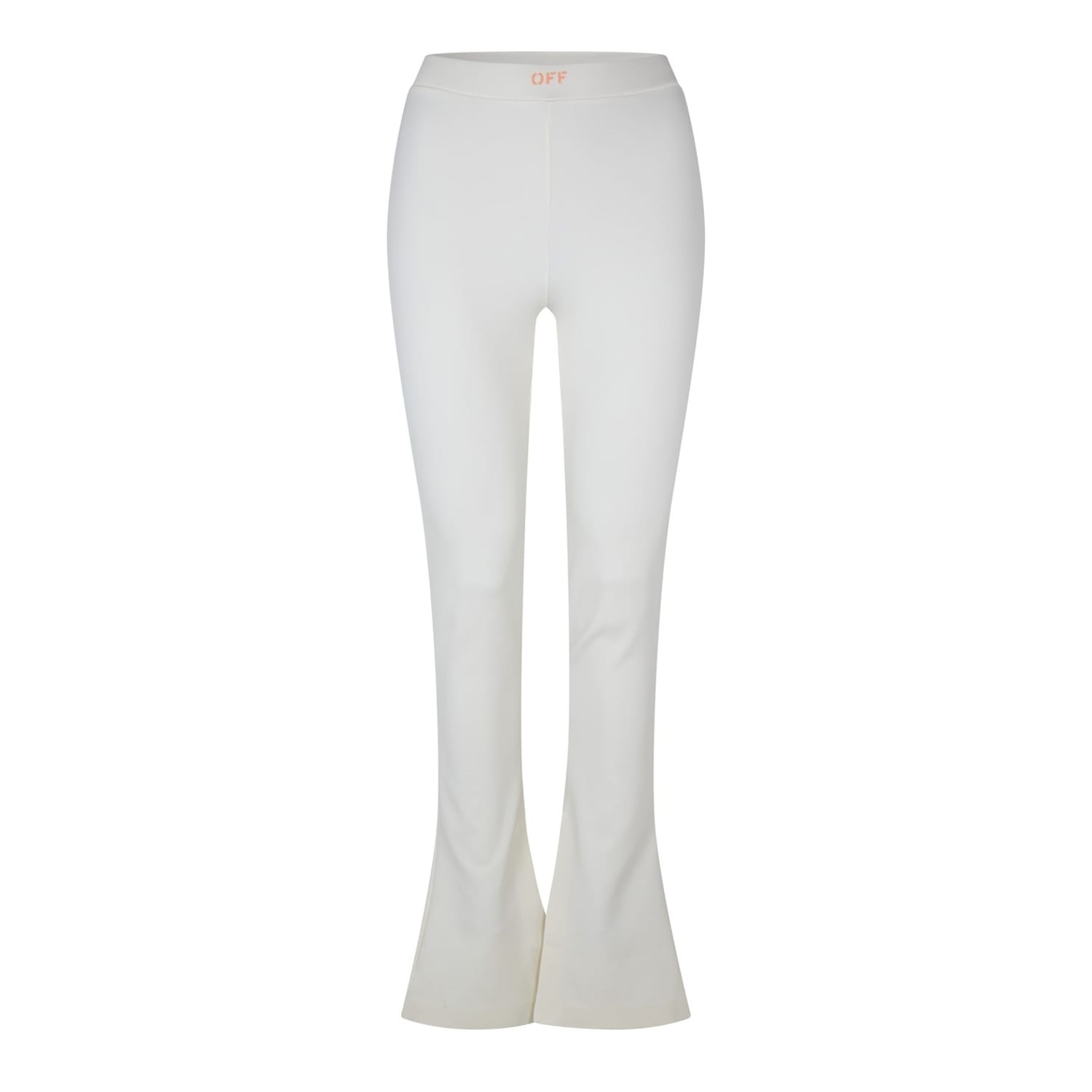 - The logo printed at the front waistband subtly signifies the exclusivity of Off White's signature style. Whether running errands or attending a casual social gathering, these Sleek Split Leggings are the perfect choice for adding a touch of sophistication to your active everyday lifestyle.