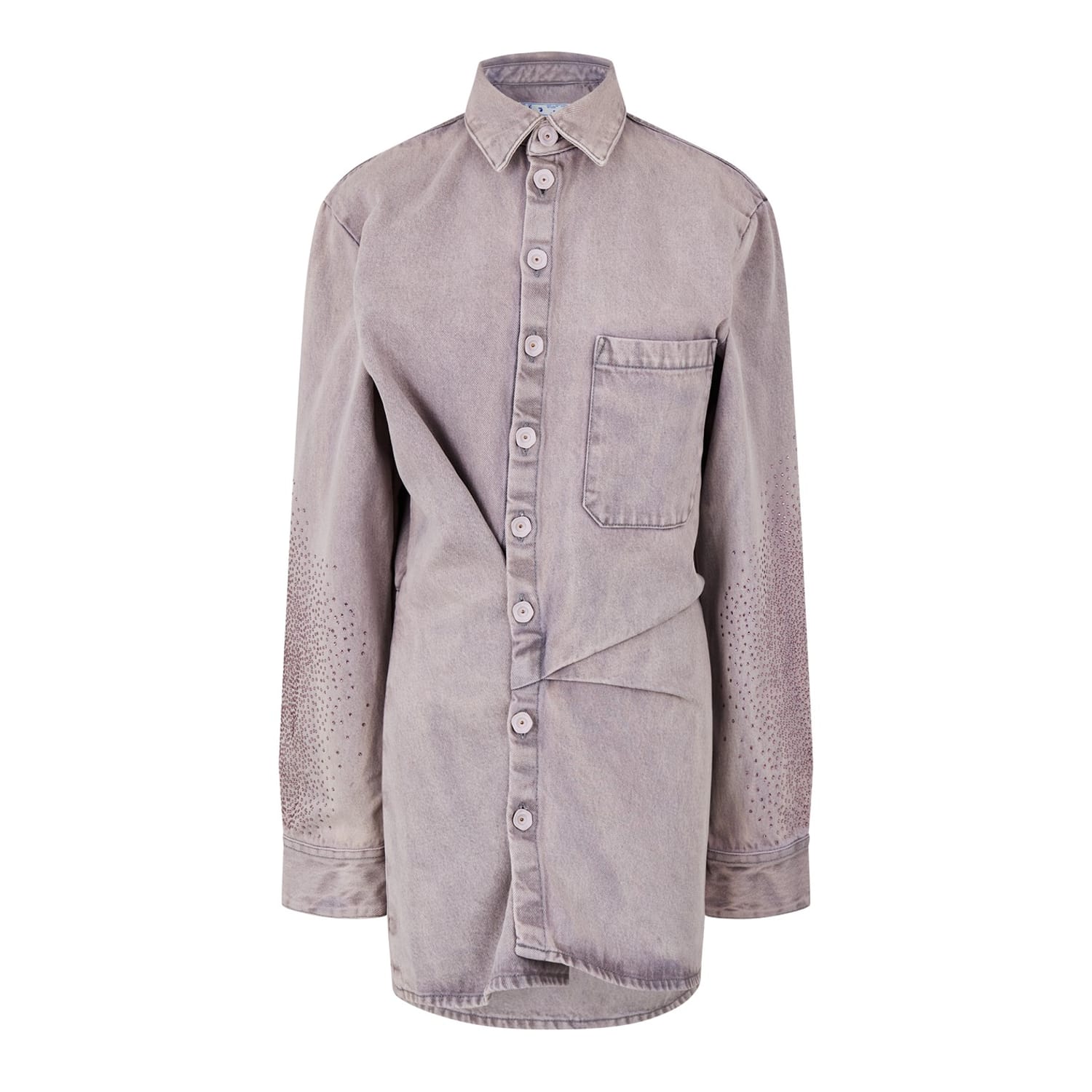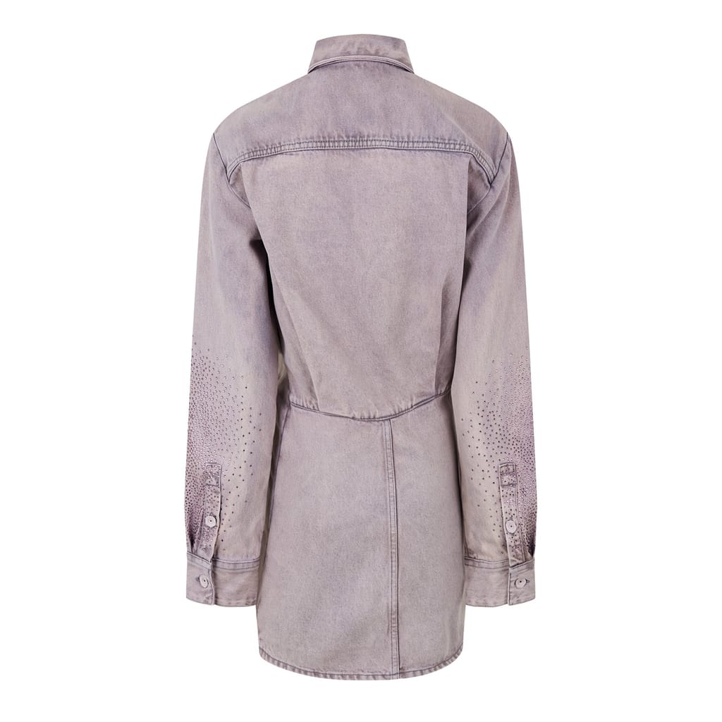 Stand out effortlessly with Off White's Monogram Mini Shirt Dress. Adorned with an all-over jacquard-woven arrow logo, exuding a striking checkerboard effect. Perfect for elevated daytime outings to chic evening affairs, this mini dress embodies modern elegance.