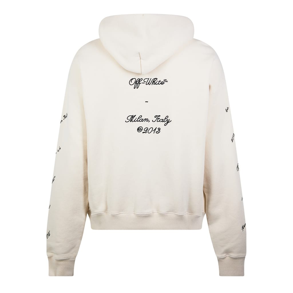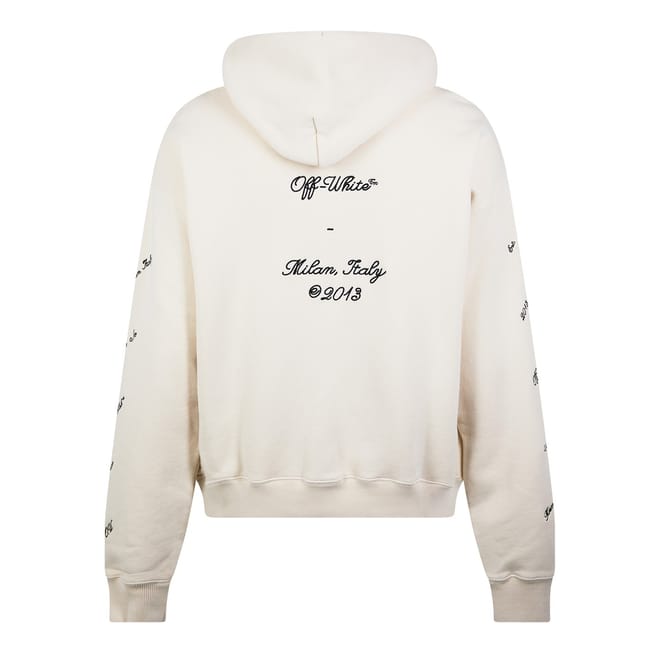This Off-White hoodie sweatshirt offers a regular fit with long sleeves, combining comfort and style. Featuring a hood and logo embellishments, it encapsulates modern streetwear aesthetics, perfect for adding a distinctive touch to your wardrobe. -