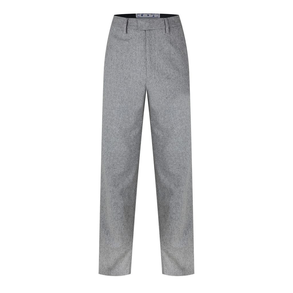 Off White trousers offer a regular fit with a button and zip fly closure. These pants feature practical pockets, combining style and functionality. Perfect for those seeking a blend of comfort and modern design. -