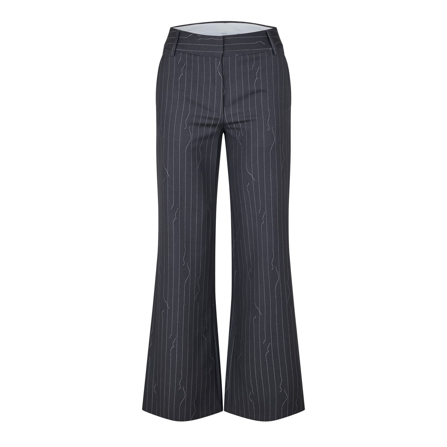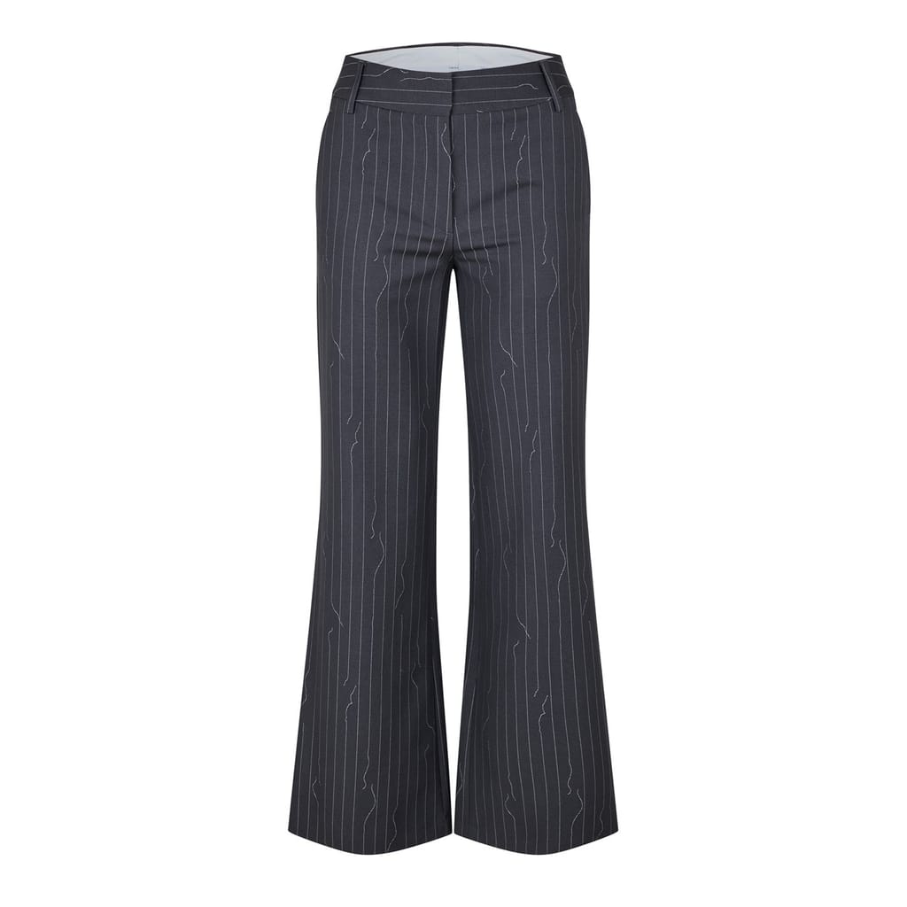 Off White trousers feature a vertical stripe pattern, offering a stylish twist to your wardrobe. Designed with a regular fit, these pants ensure comfort and ease of movement. The zip fly and button closure provide a secure fit, making them a versatile addition to any collection. -