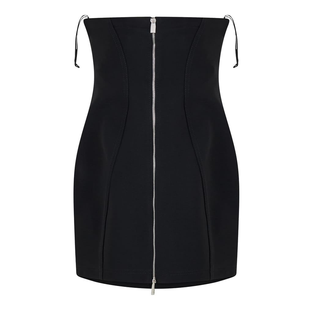 This Off-White mini dress is a sleek bodycon piece, perfect for those who appreciate a modern, minimalist aesthetic. Crafted with a solid pattern, it features a convenient zipper closure and a slim fit that accentuates the silhouette. Ideal for making a statement, this dress embodies contemporary style with its refined design. -