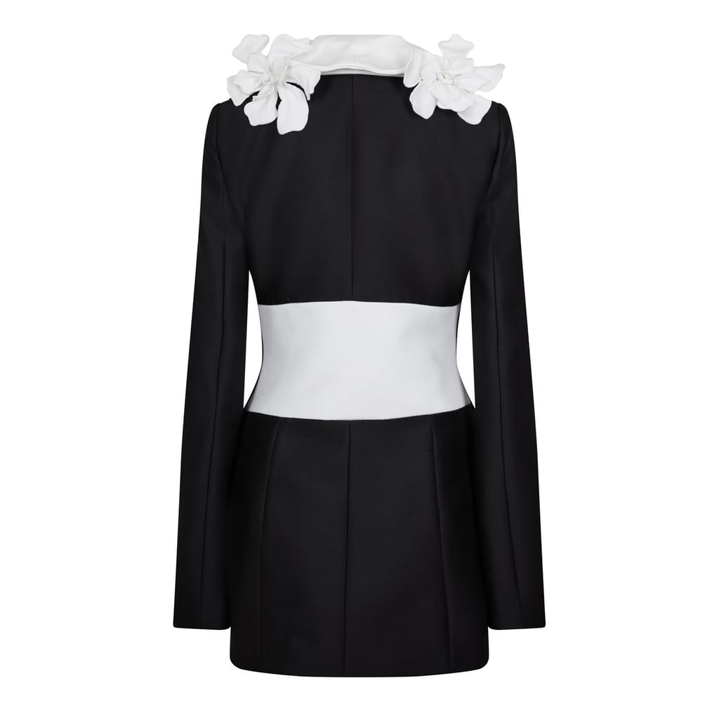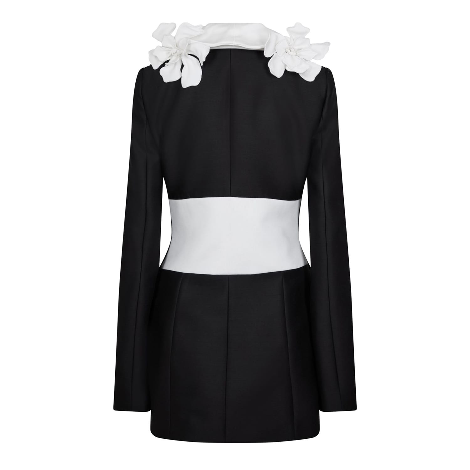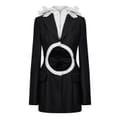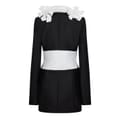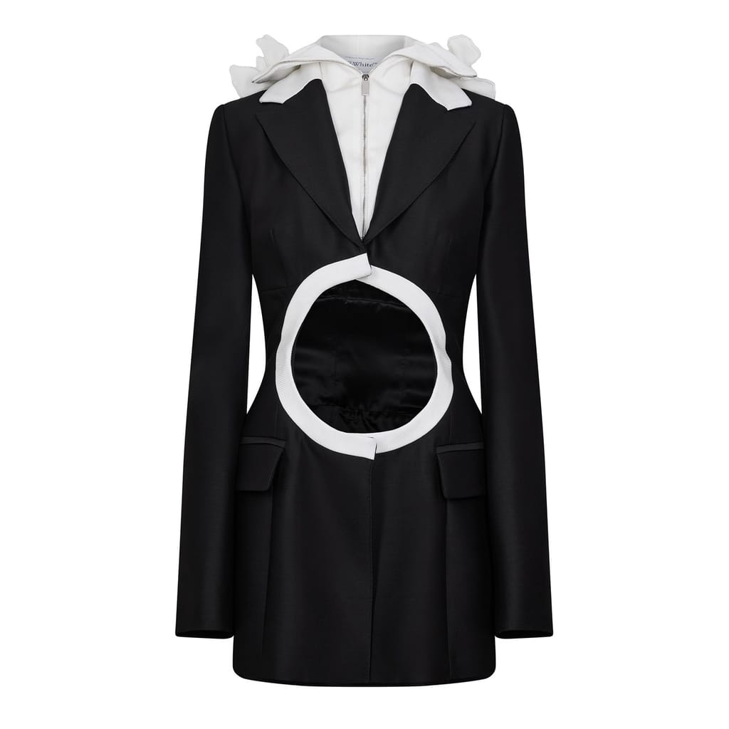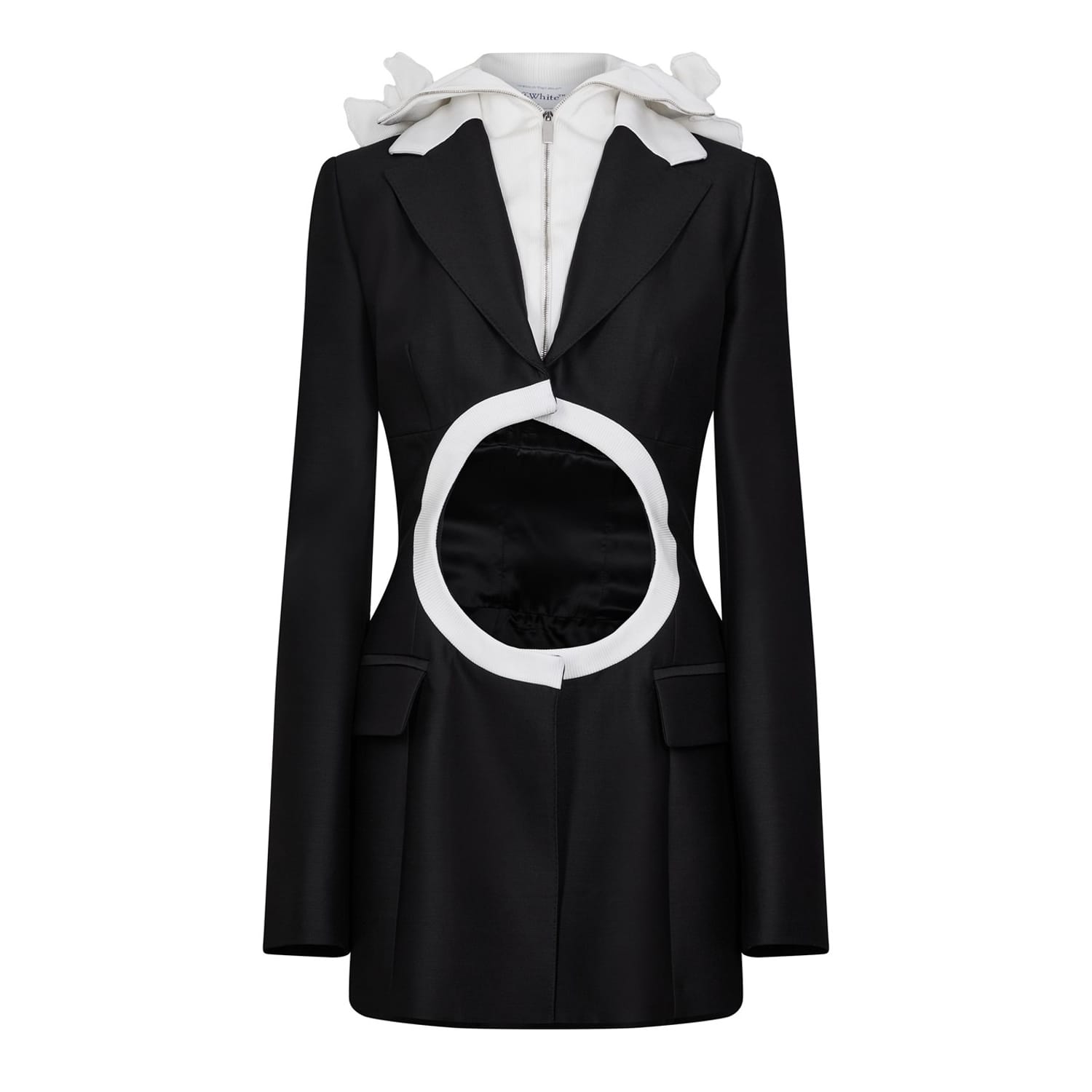 This Off White suit jacket is a sleek addition to your wardrobe. Featuring a lapel collar and a straight hem, it combines elegance with modern style. The slim fit design is enhanced by solid pattern detailing and a unique applique embellishment. The jacket is equipped with a secure snap button closure, making it both functional and fashionable. -