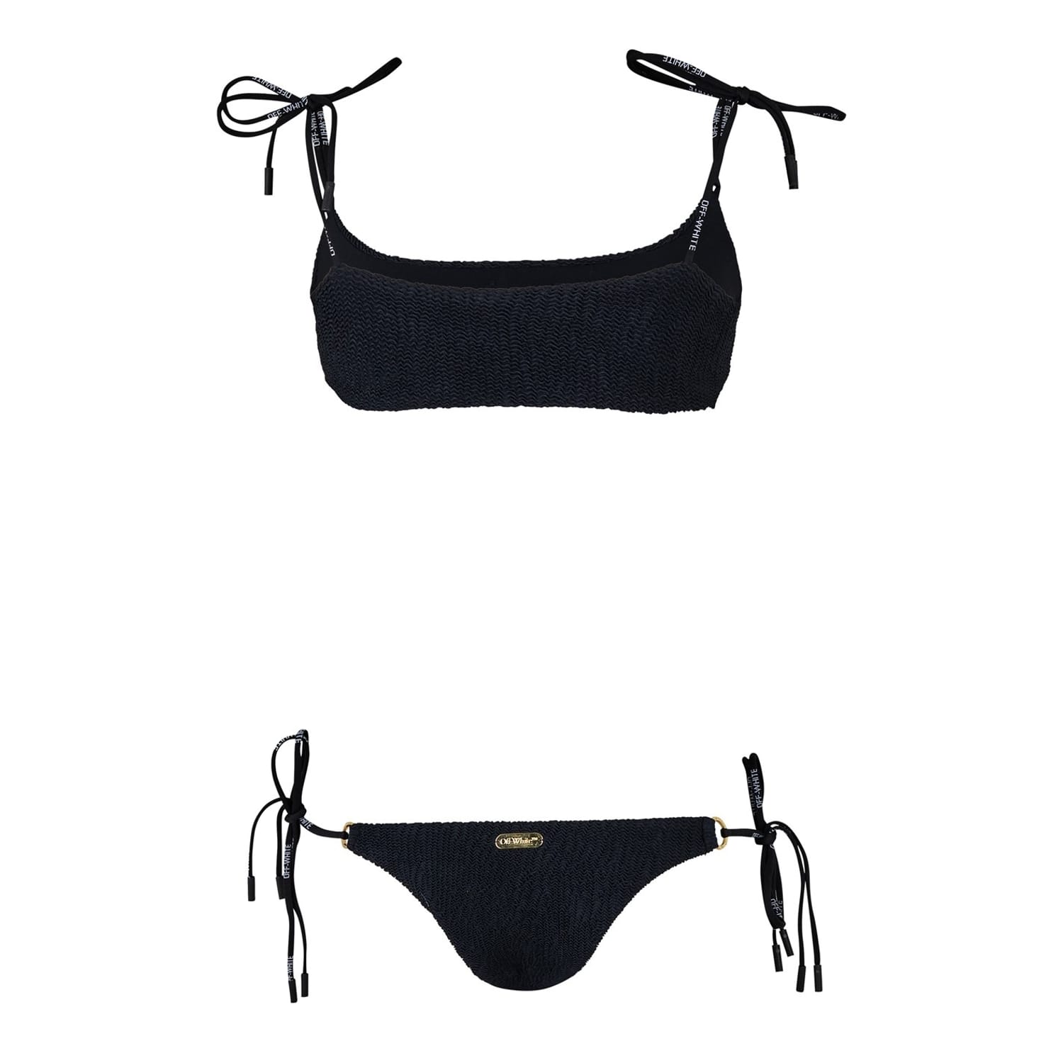 Off White swimwear offers a stylish two-piece bikini, perfect for swimming and beach activities. Featuring a tie closure, this swimwear combines functionality with a modern aesthetic, making it an ideal choice for those seeking both comfort and style in their beachwear collection. -