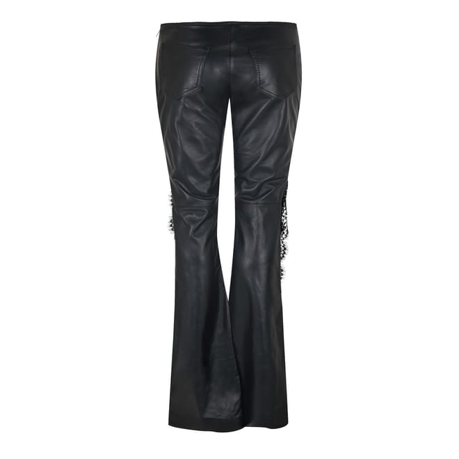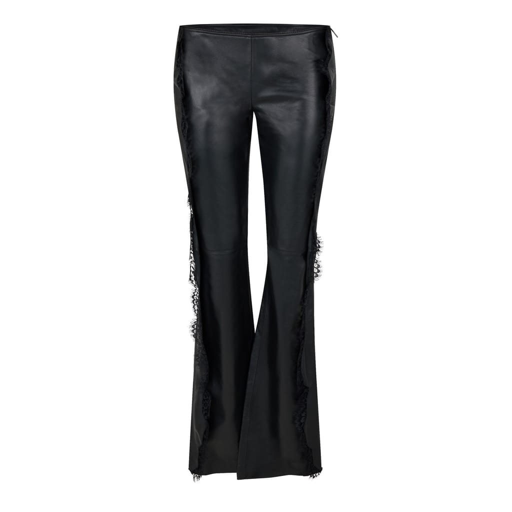 Discover Off-White trousers featuring a sleek zipper closure and a slim fit. These pants are adorned with intricate lace detail, adding a touch of elegance to your wardrobe. Perfect for those who appreciate a blend of style and sophistication. -