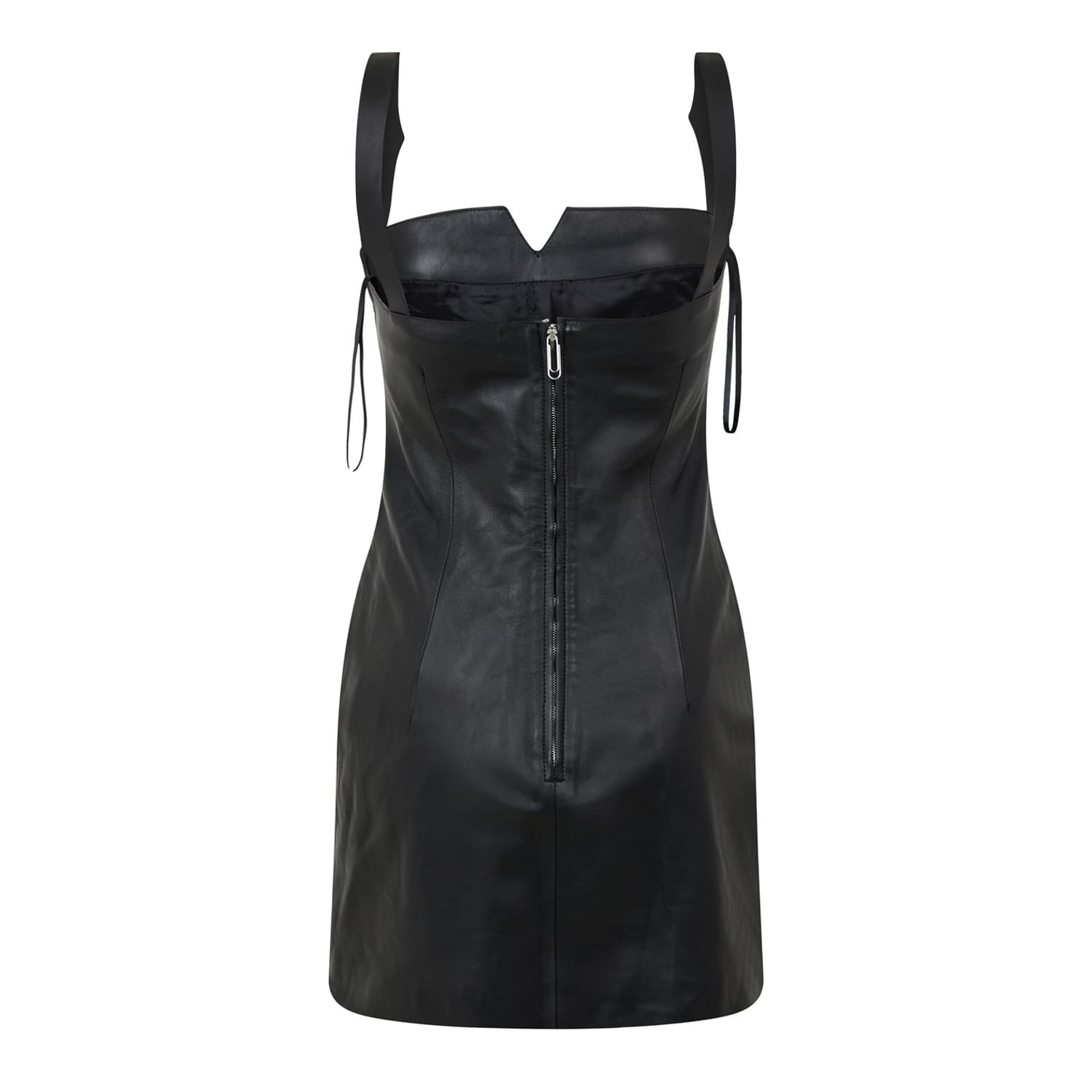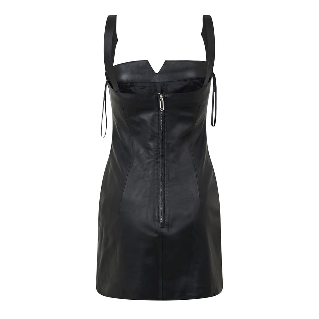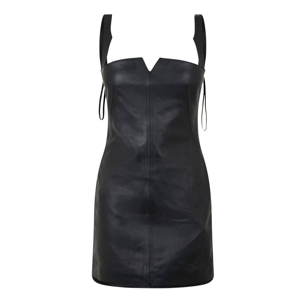 This Off-White mini slip dress features a sleek V-neck and spaghetti straps, offering a modern and minimalist look. The solid pattern and slim fit create a flattering silhouette, while the zipper closure ensures a secure fit. Perfect for those seeking a stylish and contemporary addition to their wardrobe. -