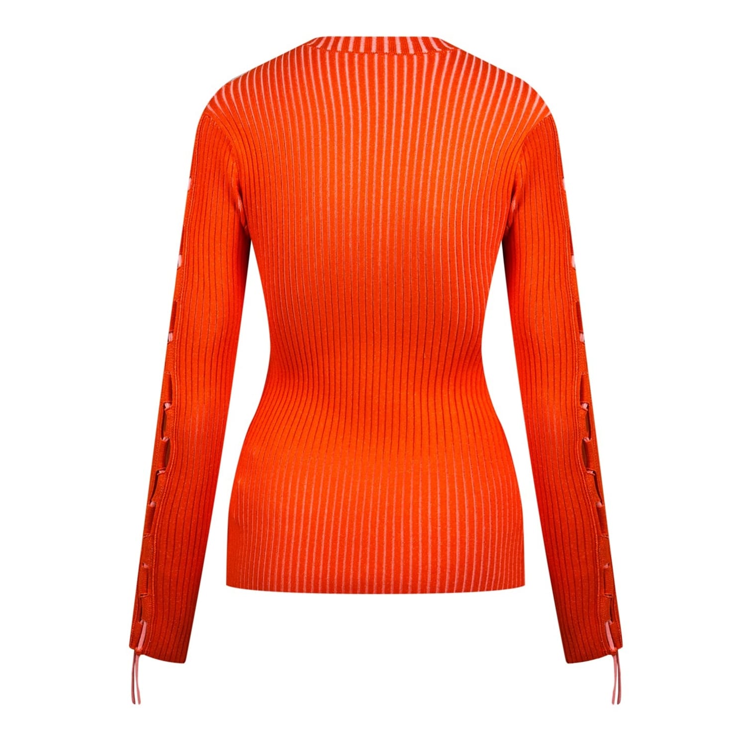 This Off White top features a jewel neck and long sleeves, crafted in a ribbed knit design. The slim fit ensures a sleek silhouette, while the ribbed collar adds a touch of texture. -