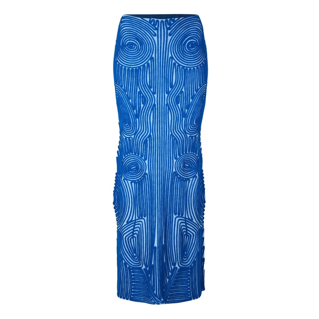 Discover the Off-White midi skirt, a perfect blend of casual elegance and modern design. This knit piece features a striking geometric stripe pattern, offering a unique visual appeal. The slim fit and A-line style ensure a flattering silhouette, while the iconic logo embellishment adds a touch of brand identity. -