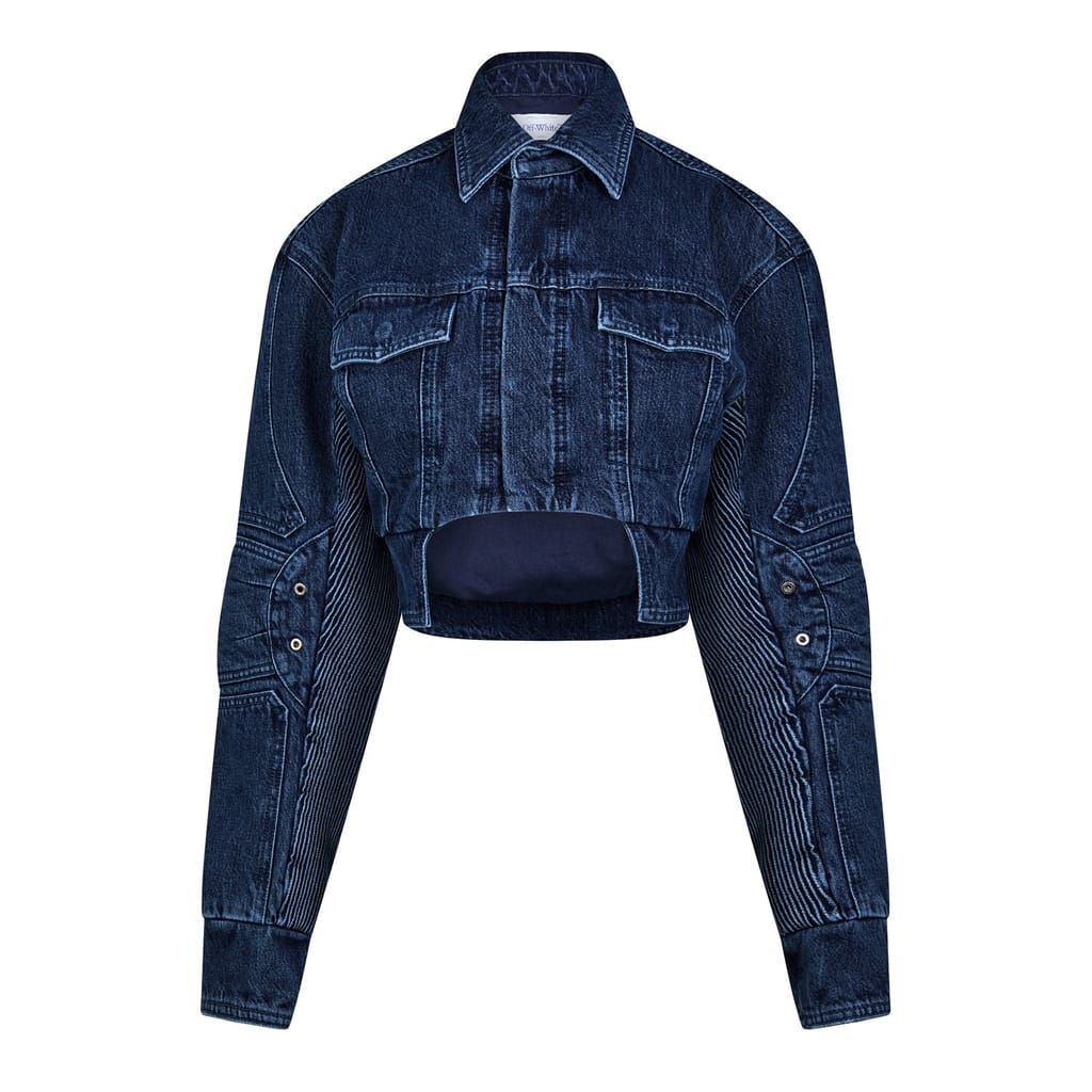 Discover the Off White denim jacket, a stylish addition to any wardrobe. This short jacket features a classic shirt collar and a solid pattern, lending it a timeless appeal. The button closure adds a traditional touch, while the regular fit ensures comfort. Complete with pockets and a straight hem, it's an effortless blend of functionality and style. -