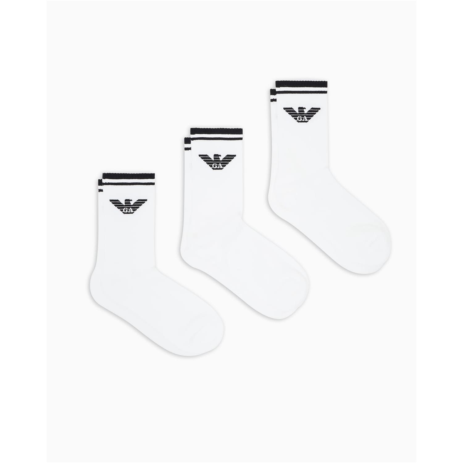 Emporio Armani presents these crew socks, designed with a long sock style for added comfort. Featuring a distinctive logo print pattern, these socks are embellished with the iconic logo, making them a stylish addition to your wardrobe. Perfect for those who appreciate subtle branding and quality craftsmanship. -