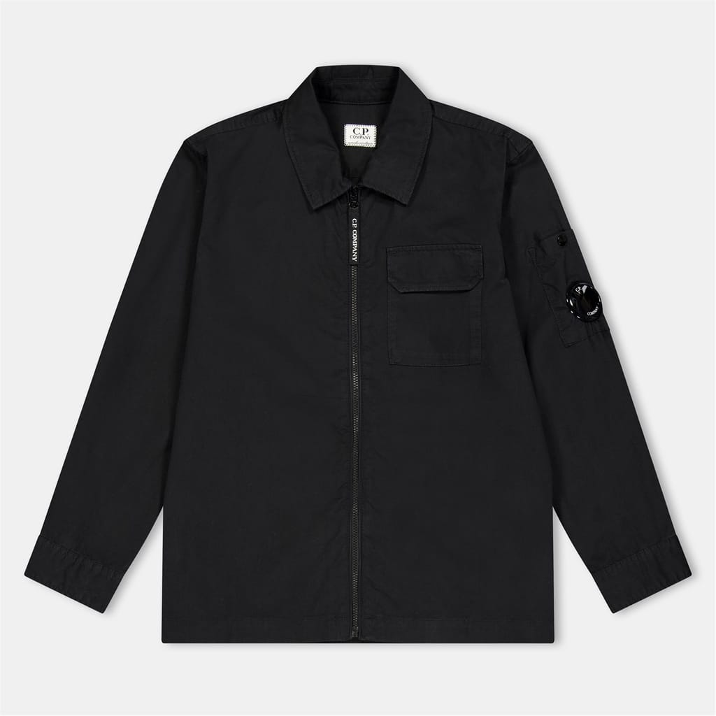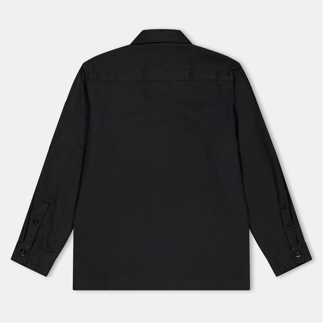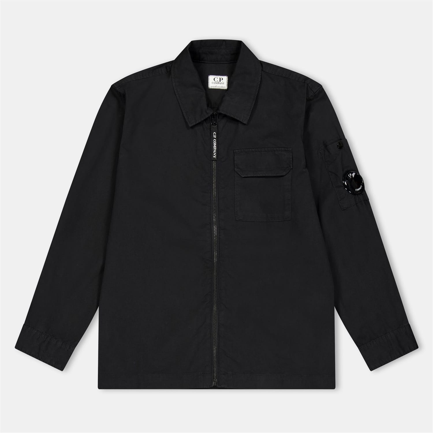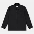 This C.P. Company overshirt from the casual collection features a solid pattern and a regular fit. It is designed with a shirt collar and a straight hem. The overshirt includes snap button and zipper closures, along with practical pockets and a logo embellishment. -