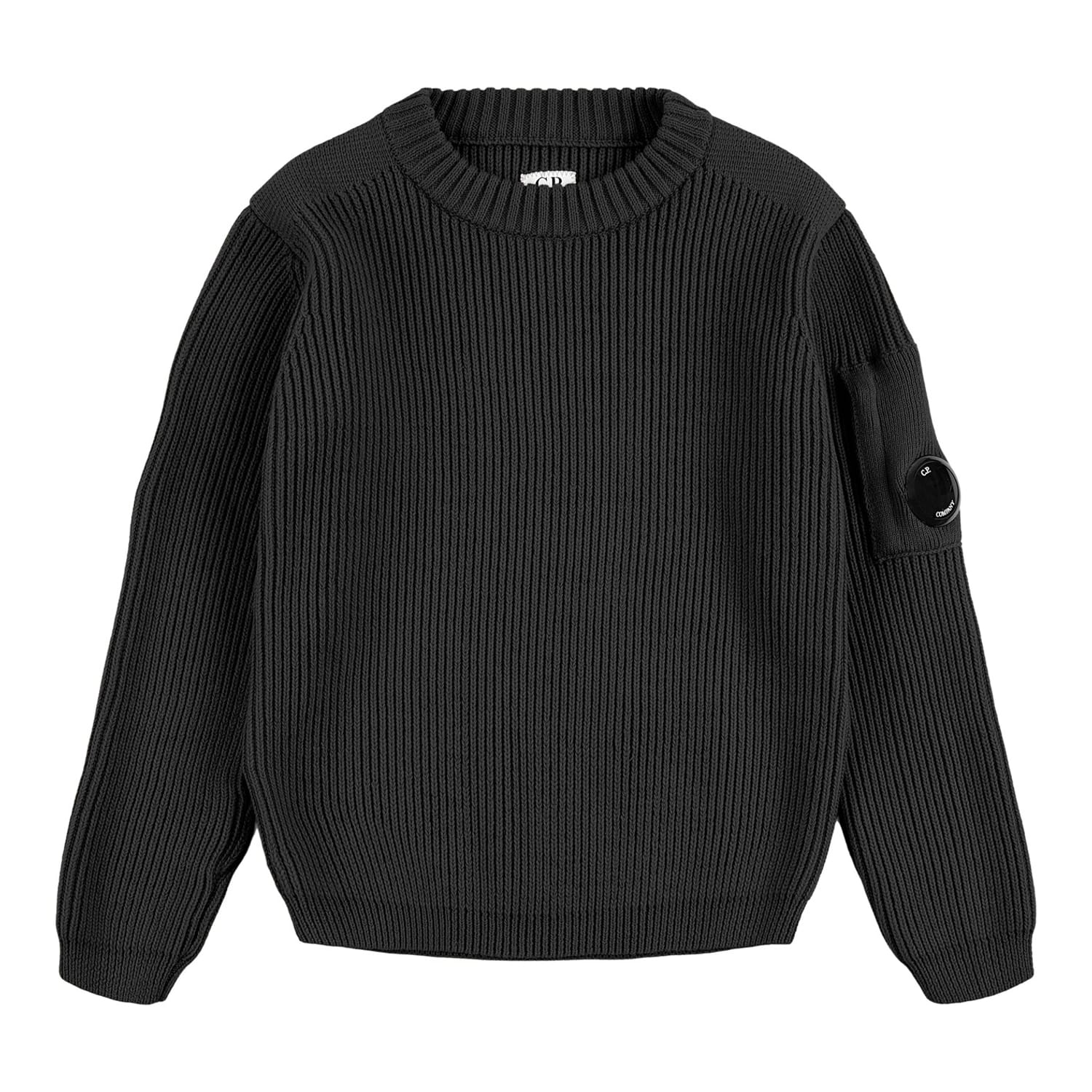 This C.P. Company top features a crew neck and long sleeves, crafted in a ribbed knit pattern. The regular fit ensures comfort, while the ribbed cuffs add a touch of style. Embellished with a pocket, logo, and badge, this top combines functionality with a distinctive look. -