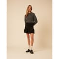 Designed to be high-waisted, this black mini skirt is reinvented with soft cord. It's finished with button detailing and falls to all-over pleats.