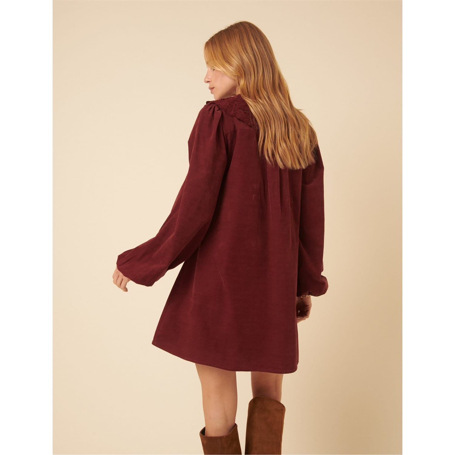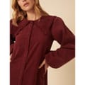 The dress to add to your rotation. Our burgundy mini dress features a scalloped collar with delicate floral embroidery. Just add boots.
