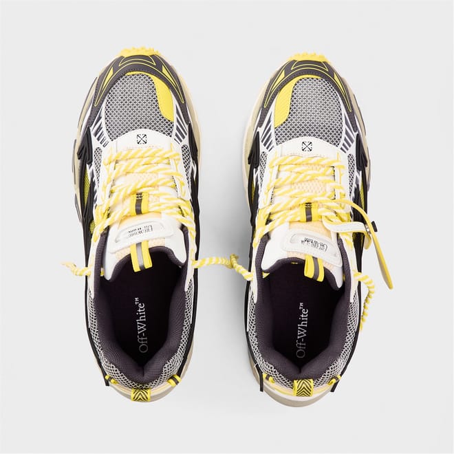 Off-White's Be Right Back designer sneakers feature a classic retro-inspired design. This shoe combines style with functionality, offering a low-top trainer shape with a practical heel tab for comfortable everyday wear.