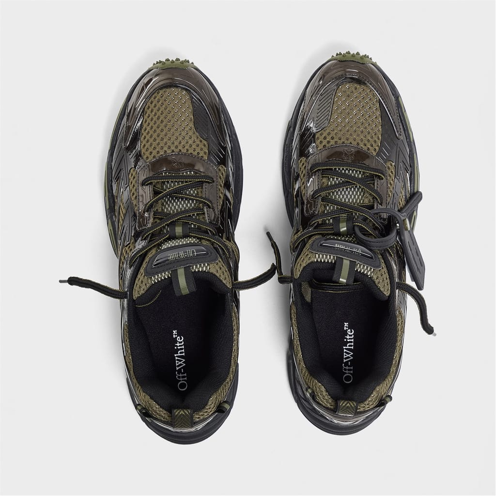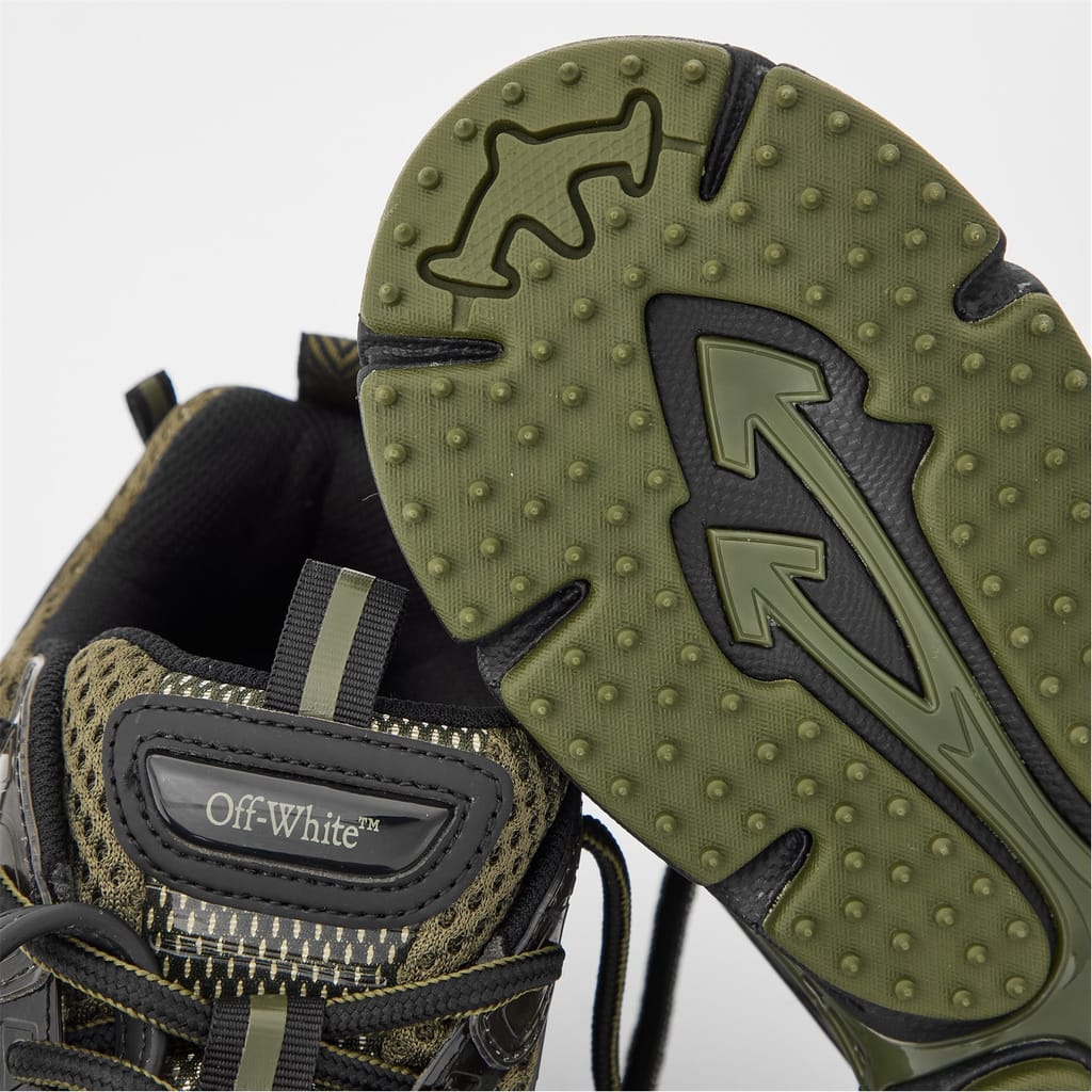 Off-White's Be Right Back designer sneakers feature a classic retro-inspired design. This shoe combines style with functionality, offering a low-top trainer shape with a practical heel tab for comfortable everyday wear.