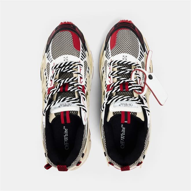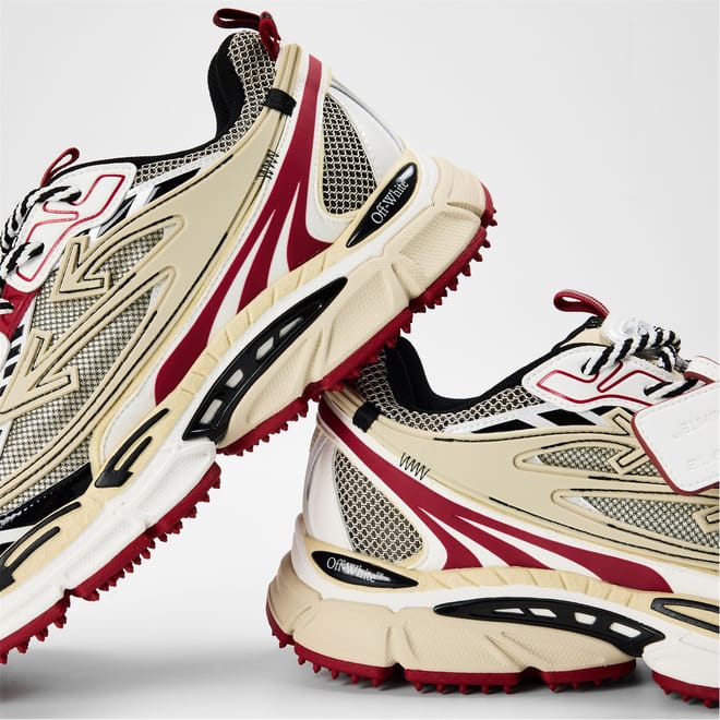 Off-White's Be Right Back designer sneakers feature a classic retro-inspired design. This shoe combines style with functionality, offering a low-top trainer shape with a practical heel tab for comfortable everyday wear.