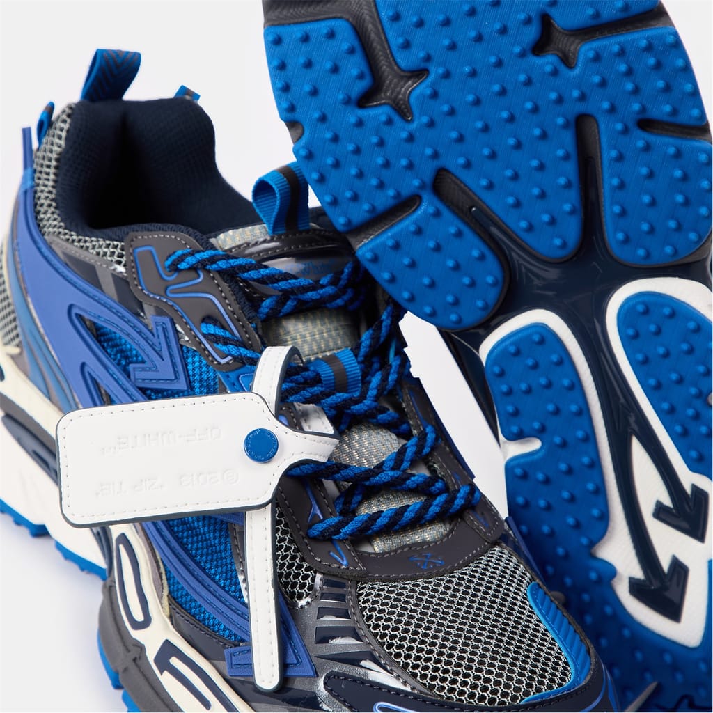 Off-White's Be Right Back designer sneakers feature a classic retro-inspired design. This shoe combines style with functionality, offering a low-top trainer shape with a practical heel tab for comfortable everyday wear.