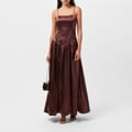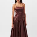 AmyLynn's Alexa Maxi Dress flows with simplicity, featuring a lustrous finish and long floor-skimming length that creates dramatic movement with every step.