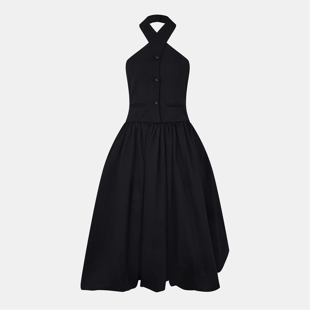 This Amylynn maxi dress features a halter neckline and a solid pattern, offering a sleek and elegant look. The dress is designed with a button closure, ensuring a secure fit. Perfect for various occasions, this dress combines style and comfort effortlessly. -