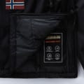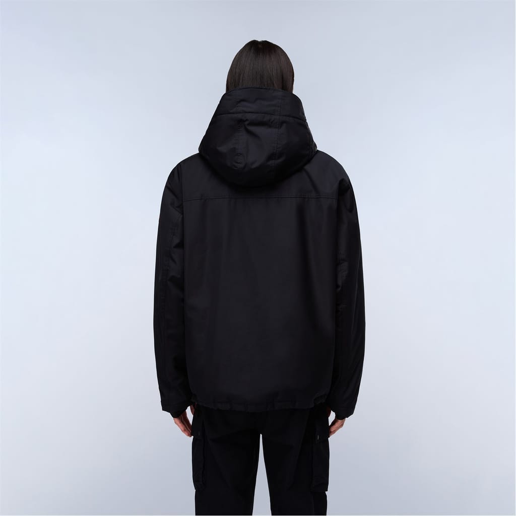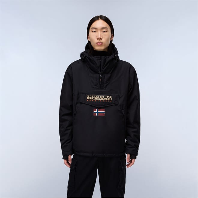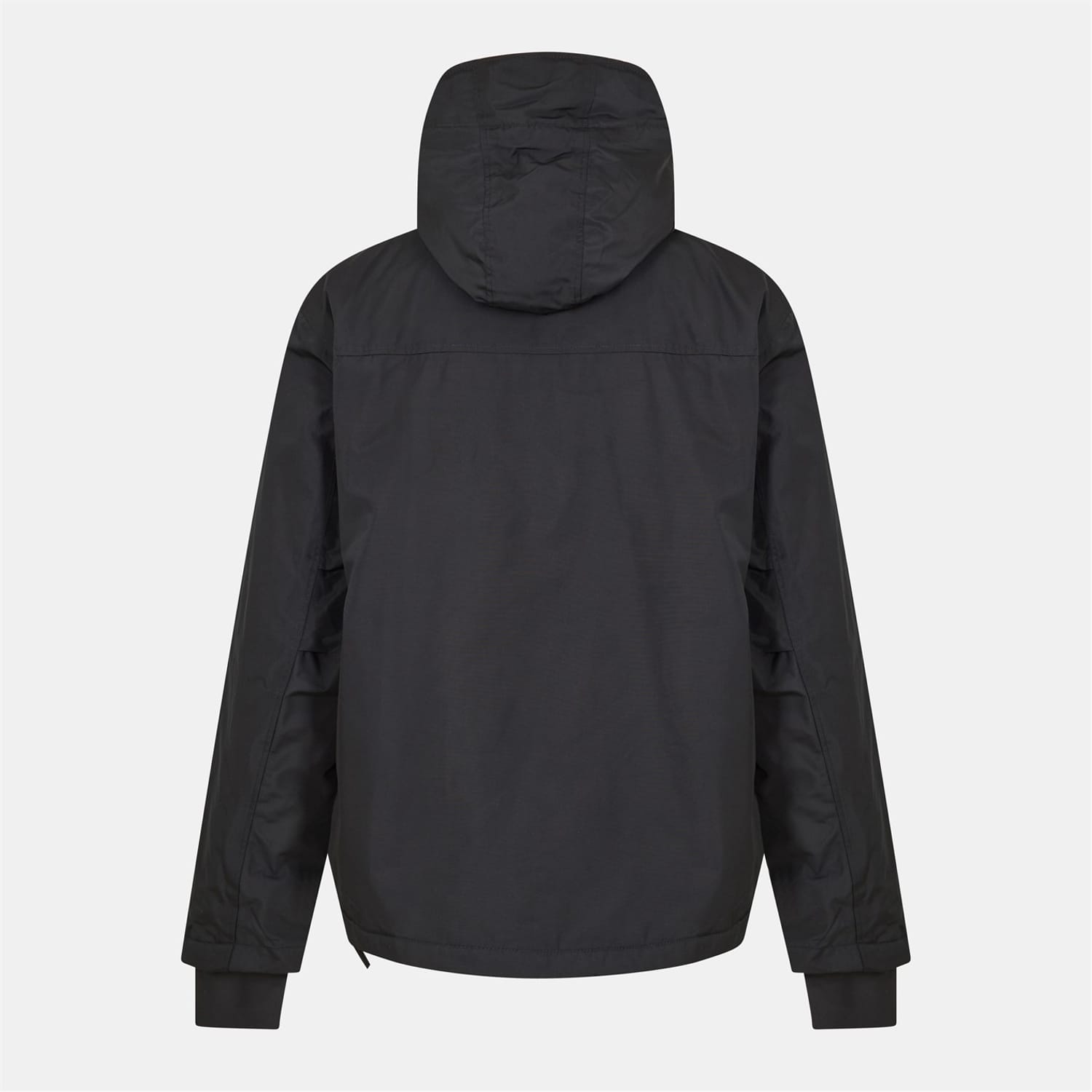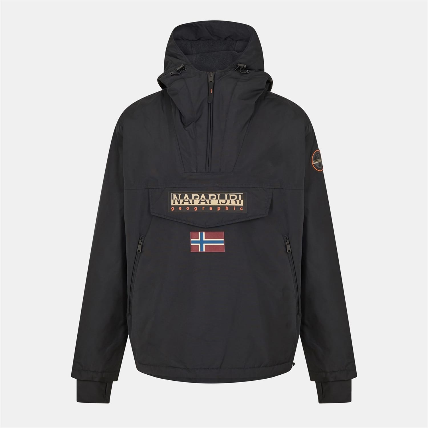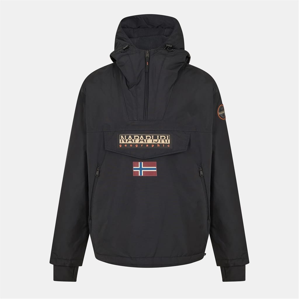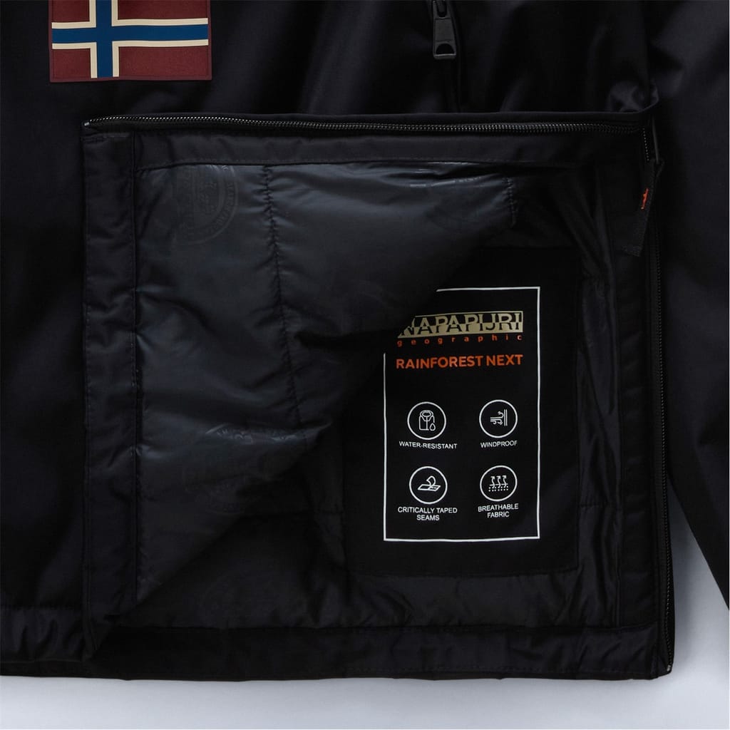 The Napapijri Rainforest jacket is a water-repellent essential for unpredictable weather. Featuring a hooded neckline and a regular fit, it offers comfort and style. The jacket includes a convenient half-zip closure and a straight hem. Embellished with a logo and practical kangaroo and zipped pockets, it combines functionality with a sleek, solid design. -