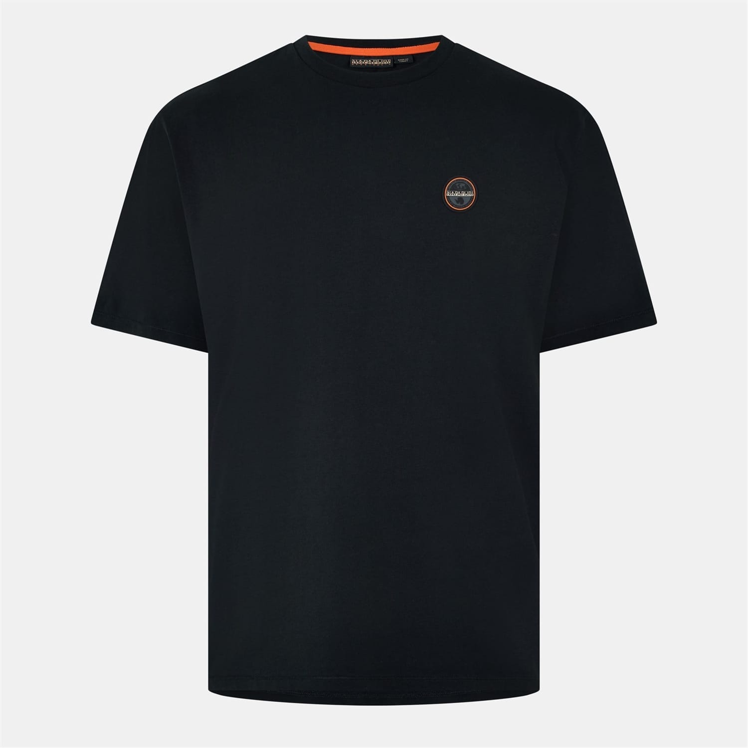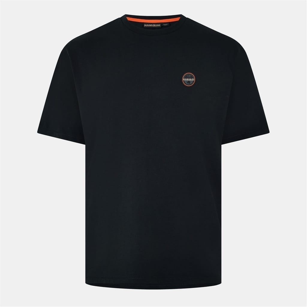 This Napapijri top features a regular fit and a classic crew neck. The short sleeves and solid pattern offer a timeless look, while the badge and logo embellishments add a distinctive touch. -