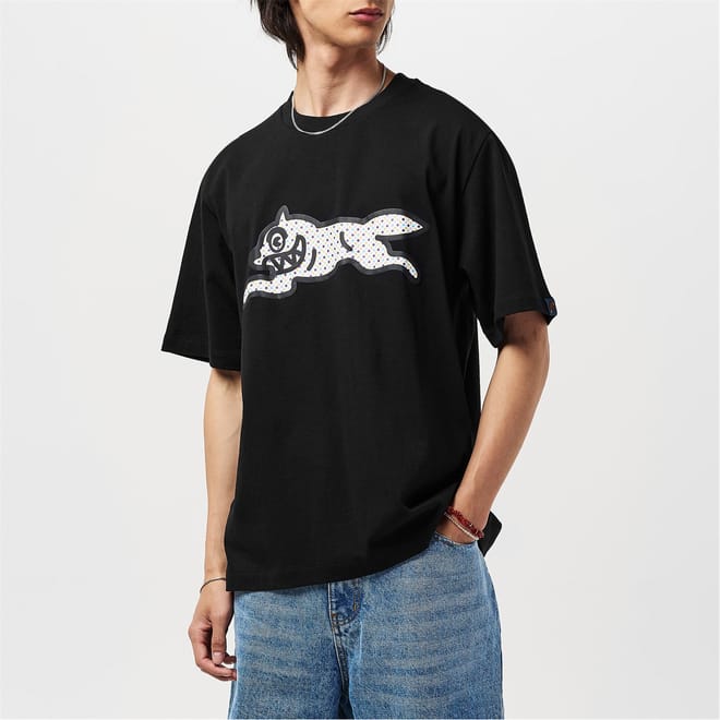 The Ice Cream Polka Dot Run Dog T-Shirt fuses bold design with laid-back comfort. Featuring a playful polka dot print and the signature Run Dog graphic front and center, this t-shirt captures the brand’s irreverent spirit with a streetwear edge. Great for off-duty days or anytime your outfit could use a shot of personality.