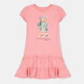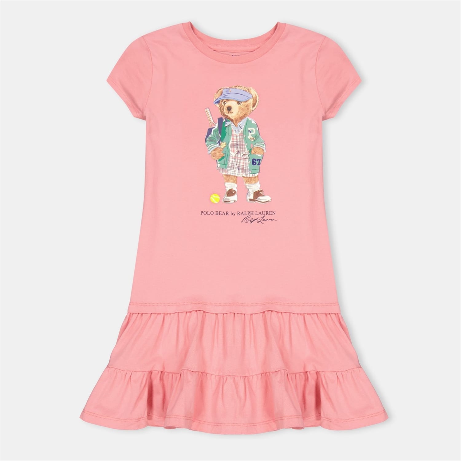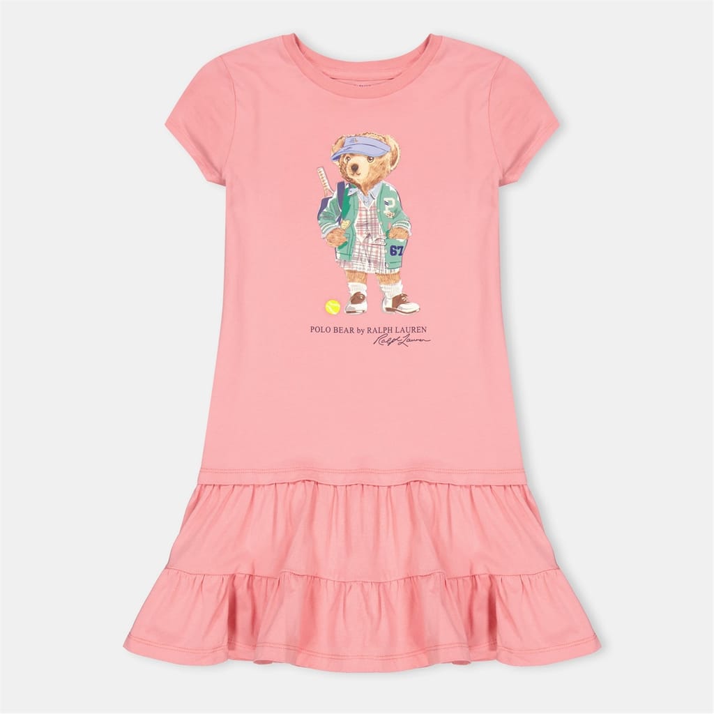 This Polo Ralph Lauren mini dress from the casual collection features a crew neck and a ruffle hem. The regular fit is adorned with a large genie graphic print and a logo embellishment, making it a standout piece for any wardrobe. -