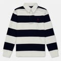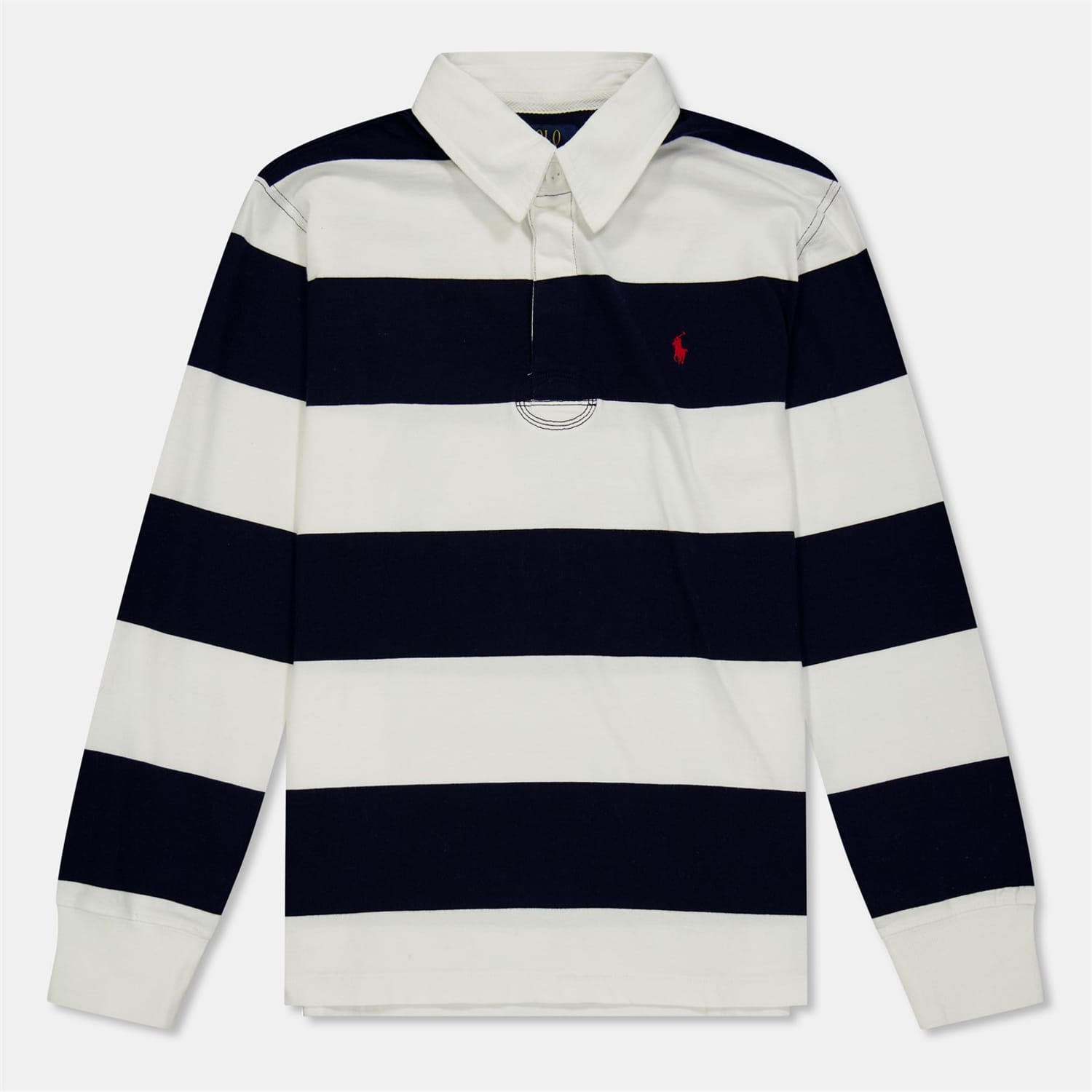 This Polo Ralph Lauren top features a classic polo collar and long sleeves with ribbed cuffs. The button closure adds a touch of sophistication, while the horizontal stripe pattern offers a timeless appeal. A subtle logo embellishment completes the design, making it a versatile addition to any wardrobe. -