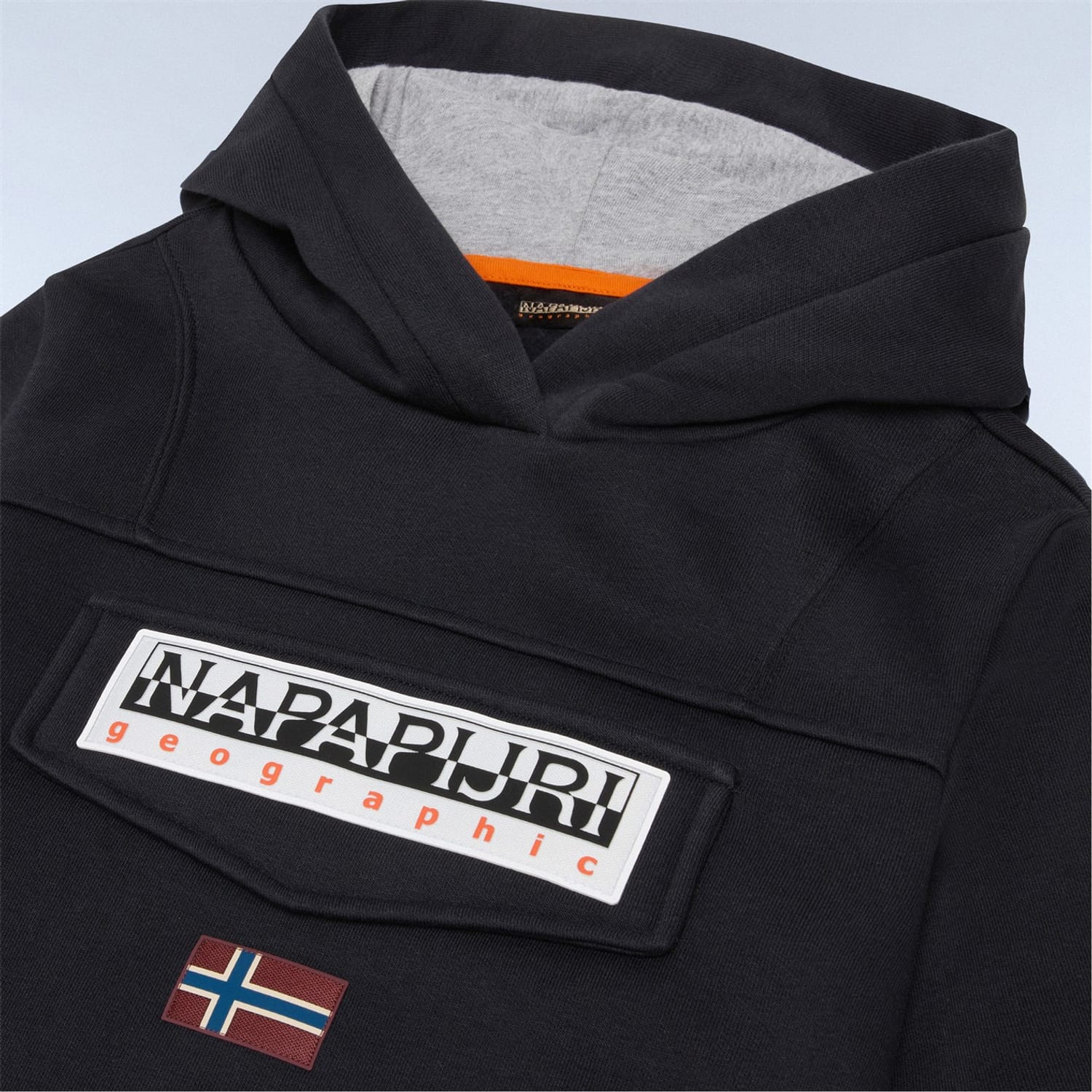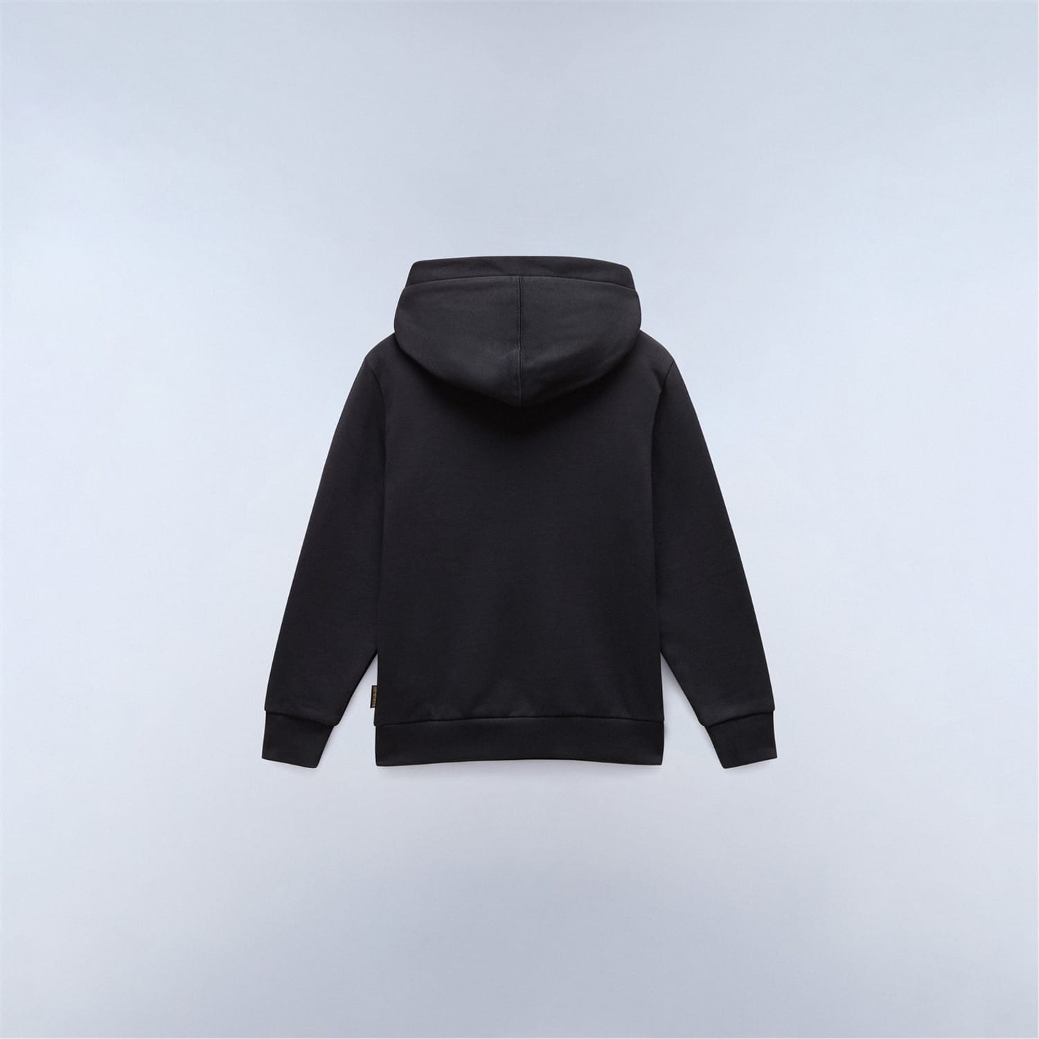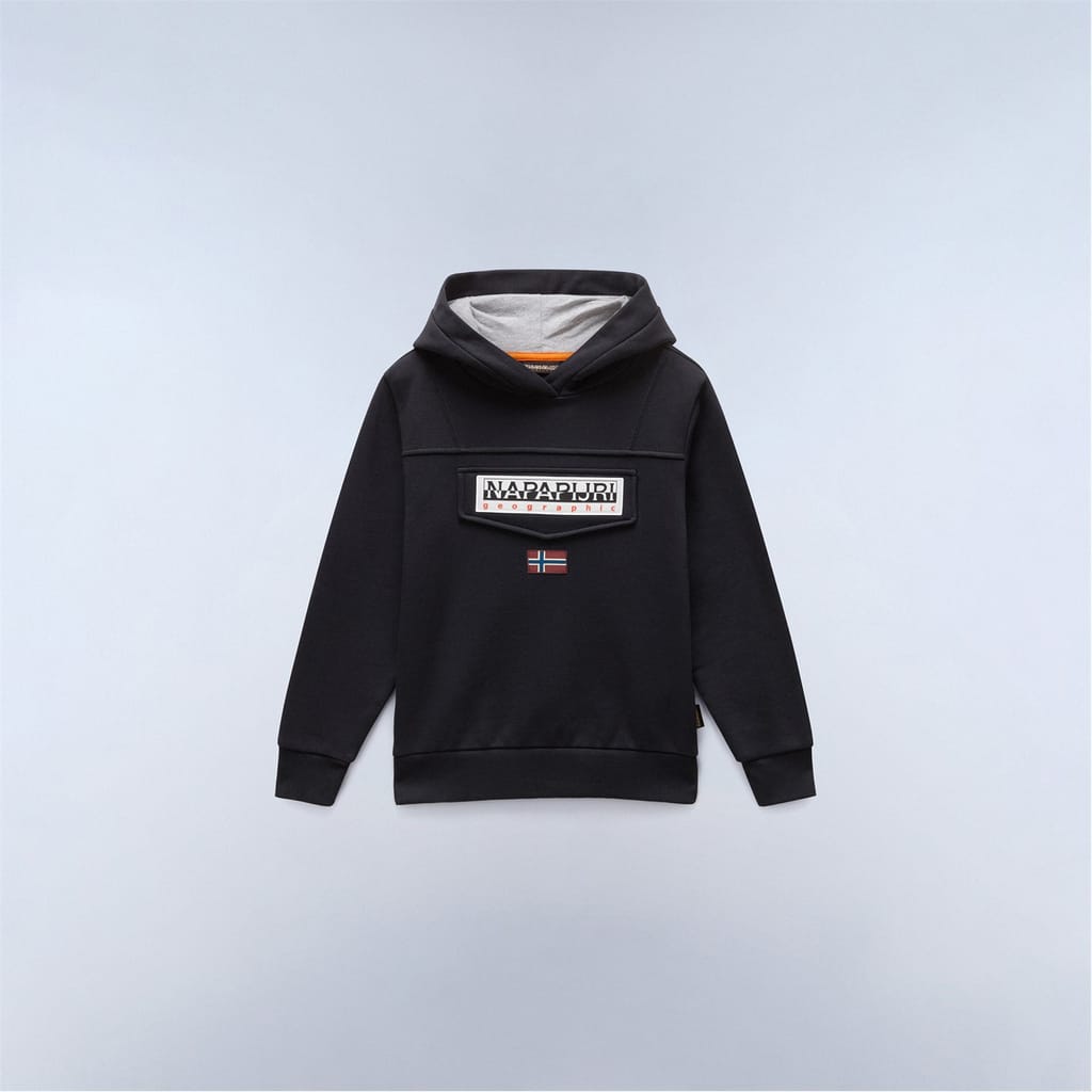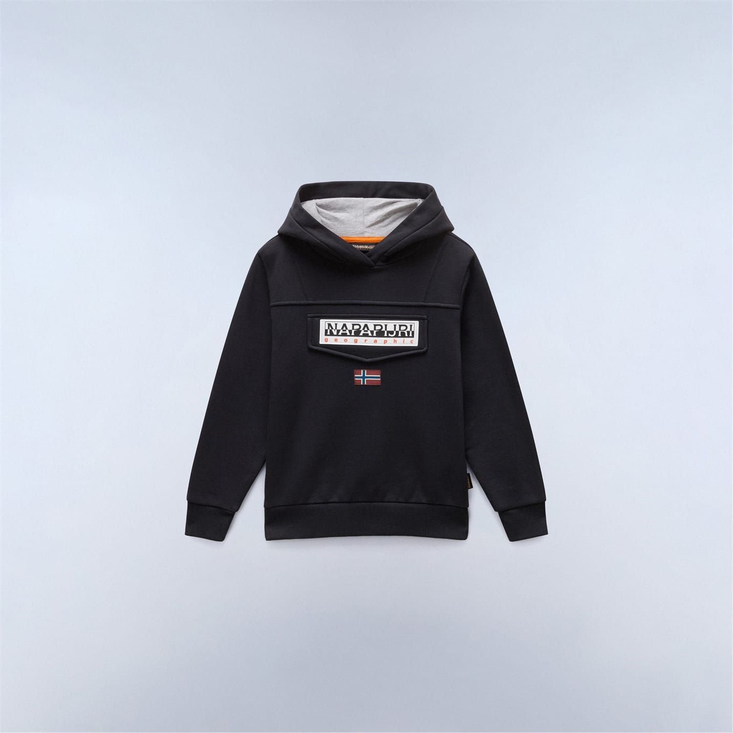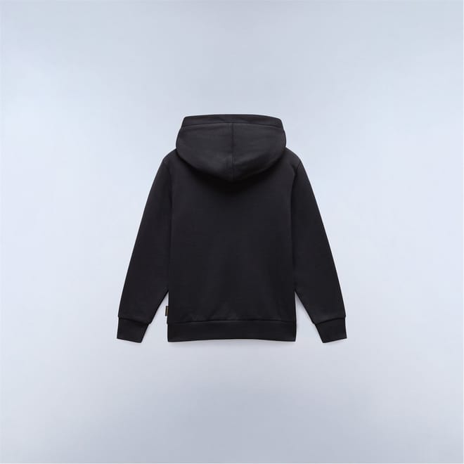 The Napapijri burgee top for juniors features a hooded neck and long sleeves with ribbed cuffs. Crafted in a solid pattern, it offers a regular fit. The design is enhanced with a logo patch, making it a stylish choice for casual collections. -