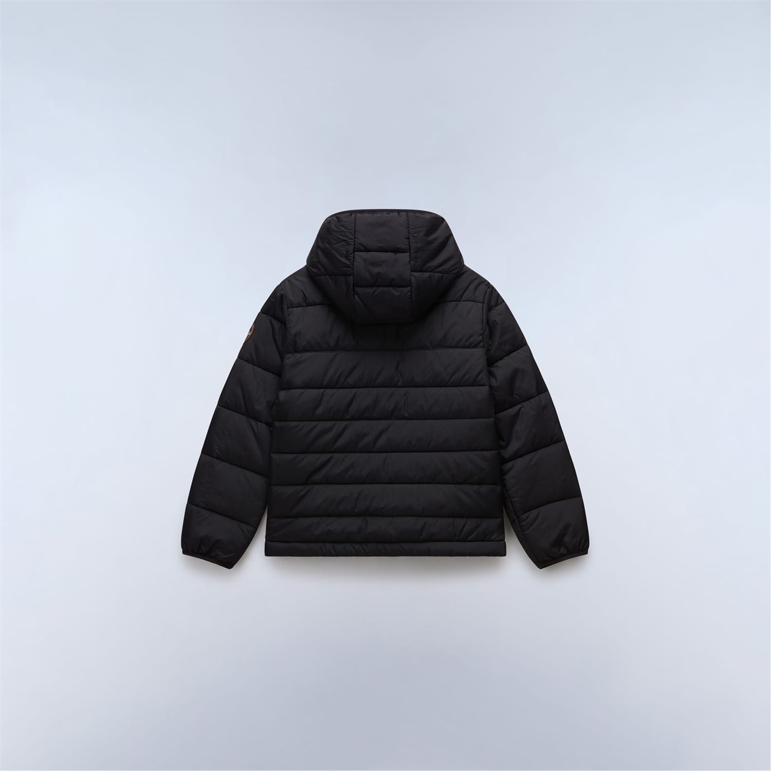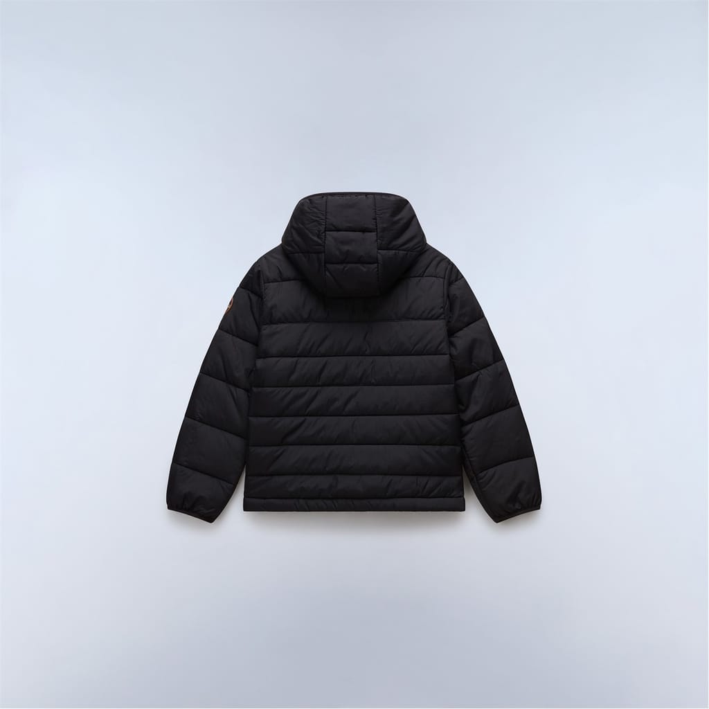 This Napapijri puffer jacket is designed for juniors, featuring a hooded neckline and a regular fit. The solid pattern and short length offer a contemporary look, while the straight hem and zipper closure ensure practicality. Embellished with a logo, this jacket combines style and functionality. -