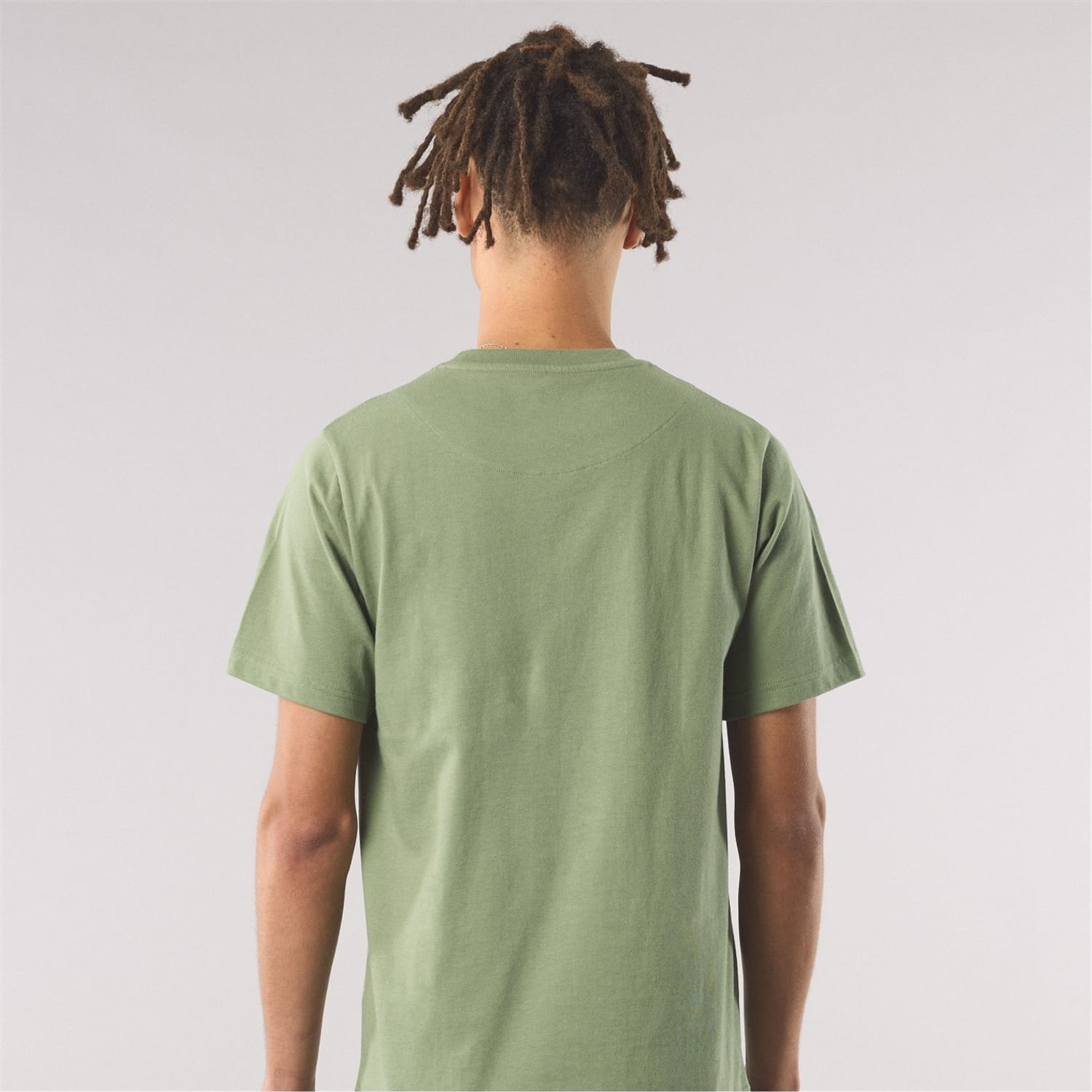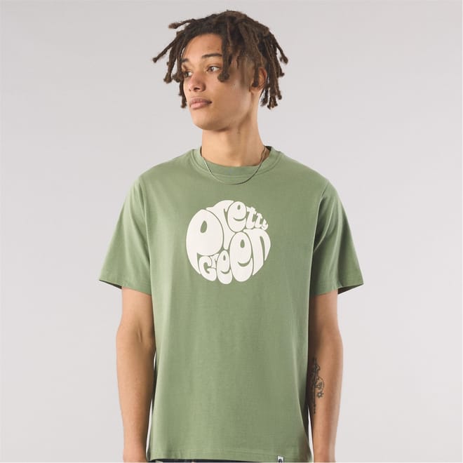 This Pretty Green top from the casual collection features a regular fit and a crew neck. It is adorned with a graphic print and a logo embellishment, adding a distinctive touch. The short sleeves make it a versatile choice for everyday wear. -