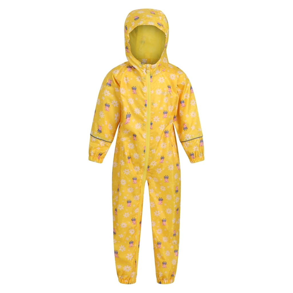 Waterproof and breathable, our Peppa Pobble all-in-one suit provides great weather protection.Featuring our lightweight, waterproof and breathable Isolite technology, the kids' rain suit fights off cold weather with ease. The taffeta lining keeps little ones comfy. They'll love the fun Peppa Pig print. -
