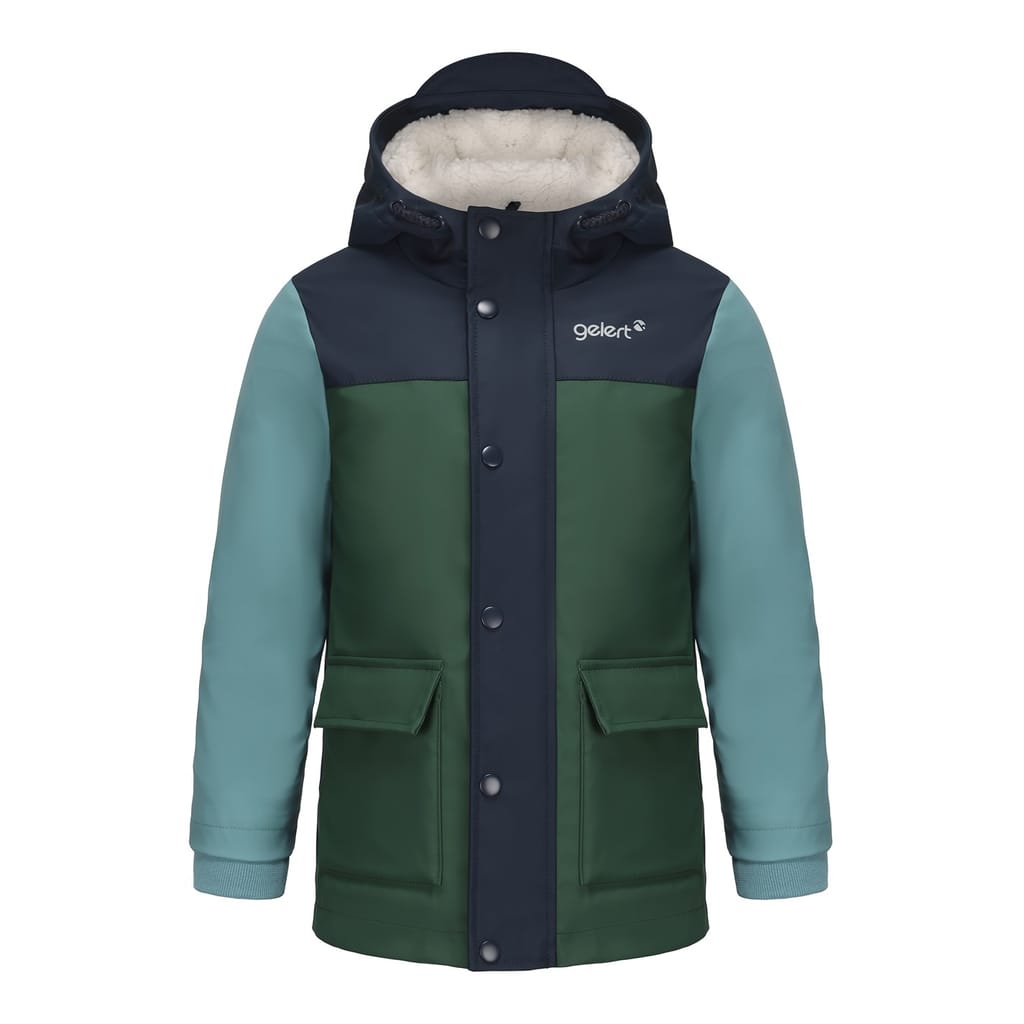 This Gelert infant parka jacket is designed for warmth and style. Featuring a hooded neckline and insulated construction, it ensures comfort in cooler weather. The jacket showcases a colour block pattern and a regular fit, with a snap button and zipper closure for secure wear. A logo embellishment adds a touch of brand identity. -