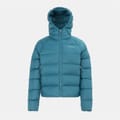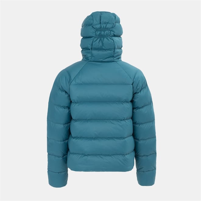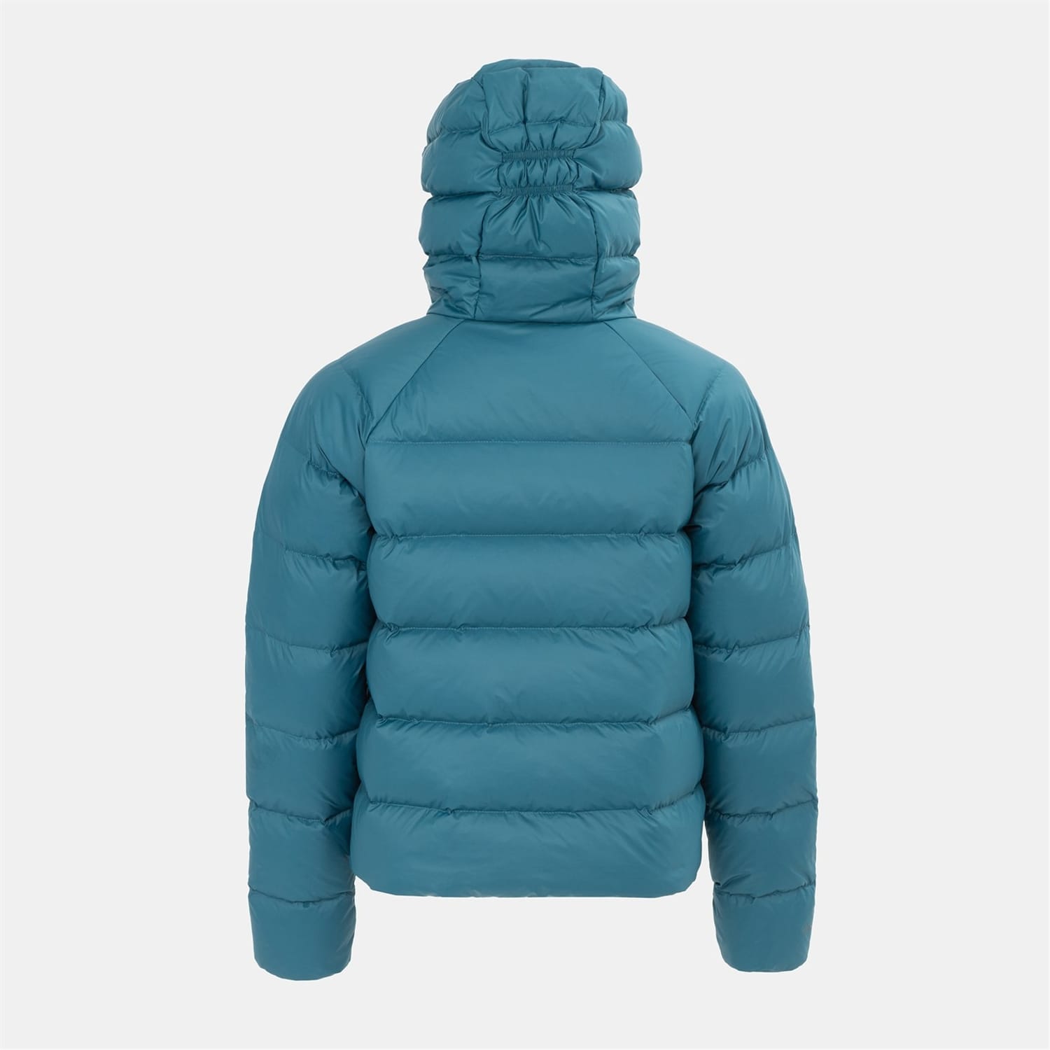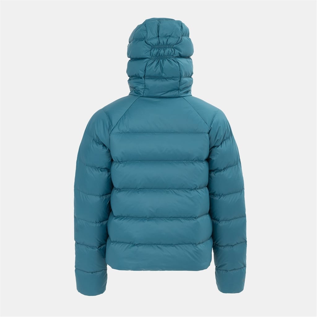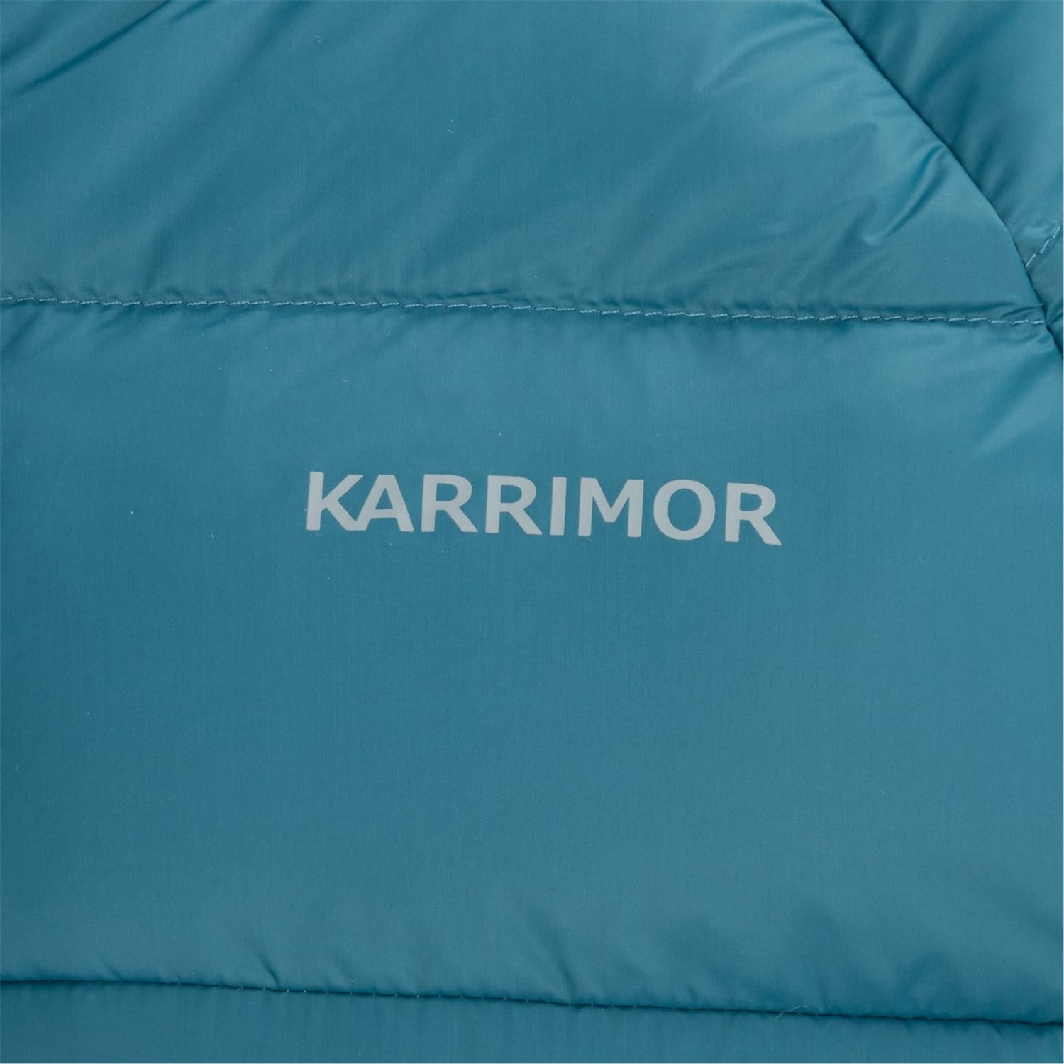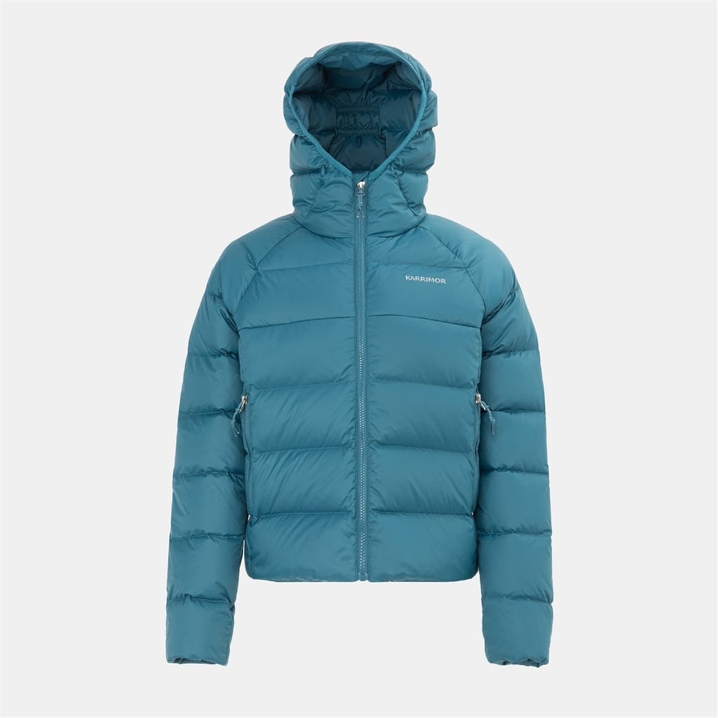The Karrimor down jacket is designed for practicality and style. Featuring a hooded neckline and a regular fit, this short jacket is crafted with a solid pattern and raglan sleeves for ease of movement. It includes a zipper closure and zipped pockets for secure storage. The jacket is embellished with the brand's logo, adding a touch of distinction to its functional design. -
