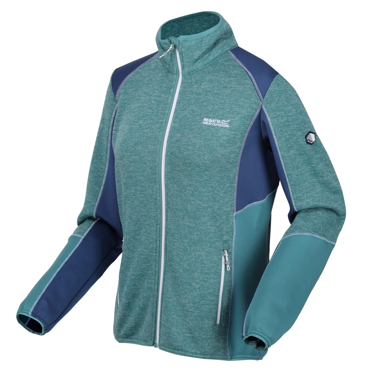 This Regatta top features a funnel neck and long sleeves, offering a regular fit. The solid pattern is complemented by a logo embellishment. It includes a front zipper closure and elasticated cuffs for added comfort. -