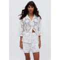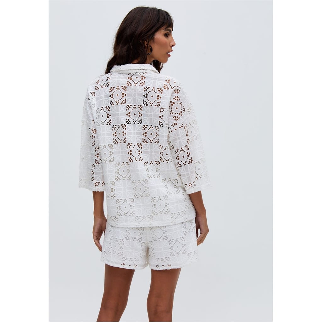 The Shelli shirt is a beautifully detailed, feminine piece that effortlessly combines timeless elegance with contemporary flair. The shirt features intricate broderie embroidery throughout, creating a delicate, textured pattern that adds depth and dimension to the classic white base. The result is a sophisticated, airy feel that’s perfect for both casual and more elevated occasions.