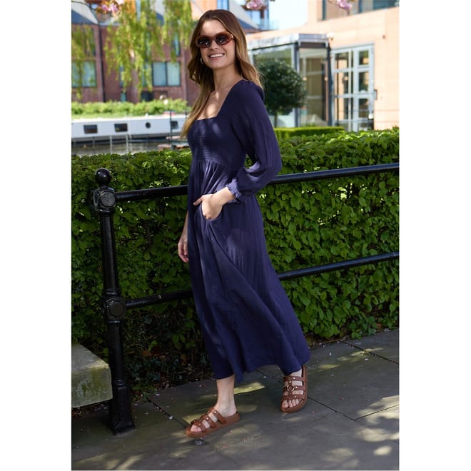 This Lily & Lionel midi dress features a sophisticated square neck and elegant puff sleeves, creating a timeless A-line silhouette. The solid pattern and straight hem add to its classic appeal, while the practical pocket embellishment offers a touch of functionality. Perfect for those seeking a blend of style and practicality. -