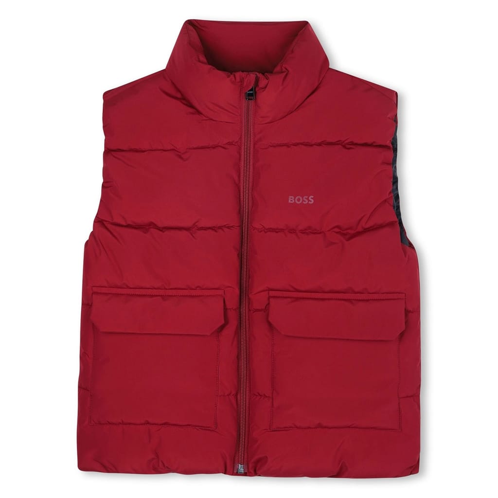 This Boss gilet is a stylish addition to your wardrobe. Featuring a high collar and a zipper closure, it offers a regular fit with a short length. The padded design ensures comfort, while the solid pattern adds a sleek touch. Embellished with pockets, flap pockets, and a logo, it combines functionality with a modern aesthetic. The straight hem completes the look. -