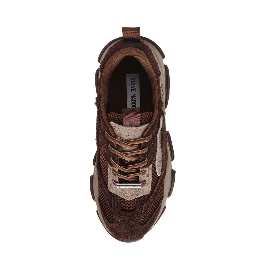 Contemporary chunky trainers merge mesh panels with smooth overlays for a bold statement. The Steve Madden Possession trainers feature a distinctive platform sole with chevron-patterned grip, delivering both attitude and practicality. A breathable mesh construction pairs with traditional lacing, while the padded collar ensures lasting comfort throughout wear. The chunky sole unit creates a strong silhouette that pairs perfectly with casual outfits.