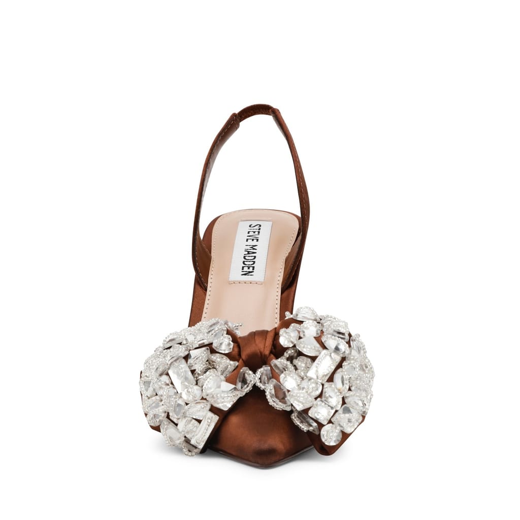 - Mixed-cut clear crystals at the vamp create a sparkling finishing touch that draws the eye.