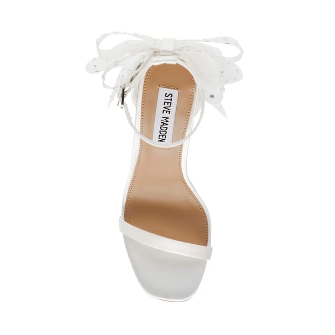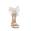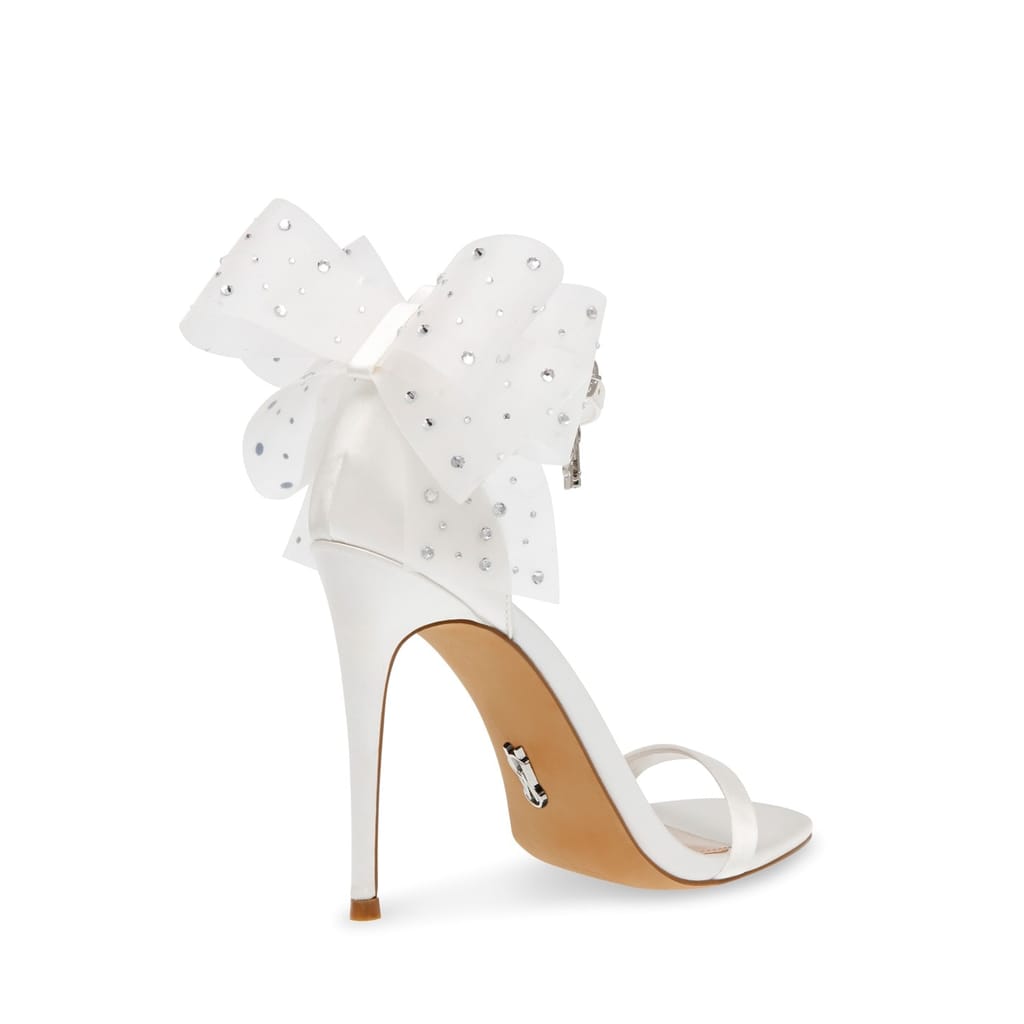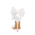 - Decorative bows studded with rhinestones at the heel create a commanding look that snags attention.