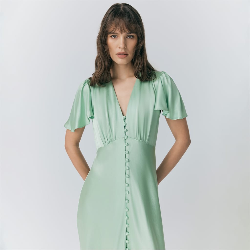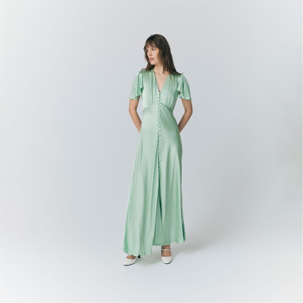 Ghost's Delphine Maxi Dress features a floor-length design with fluid drape for styling.