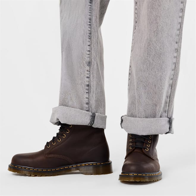 Discover the iconic Dr. Martens combat boots, a staple in footwear fashion. These round-toe boots are crafted for durability and style, making them a versatile addition to any wardrobe. Perfect for those seeking a blend of comfort and edgy design, these boots embody the classic Dr. Martens aesthetic. -