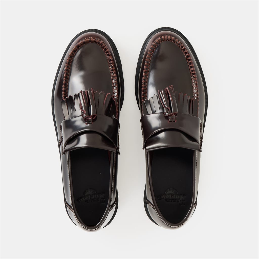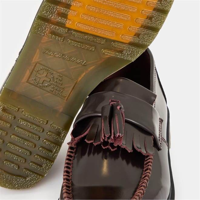 Becoming a trending silhouette, the Dr Martens Adrian Leather Tassel Loafers are a subcultural classic re-working the brands iconic designs. Crafted with a smooth and durable leather upper, this slip on silhouette are made with the GoodYear welt meaning the upper and rubber sole are heat-sealed together with the signature yellow topstitching. With a tassel detailing to the upper vamp, this pair are perfect to style with straight leg trousers and an oversized sweater for a sophisticated style. Material Composition: Upper and Lining: Leather. Outsole: PVC.
