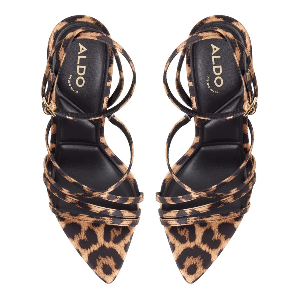 Step into style with Aldo's open-toe sandals, featuring a striking leopard pattern. Perfect for those who appreciate a bold design, these shoes offer both comfort and flair. Ideal for adding a touch of wild elegance to your footwear collection. -